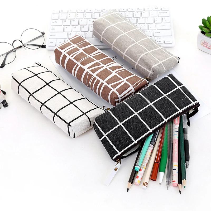Корейский простой милый сетчатый холщовый пенал Kawaii, студенческие канцелярские принадлежности, школьные принадлежности, портативные офисные аксессуары, сумка для ручек