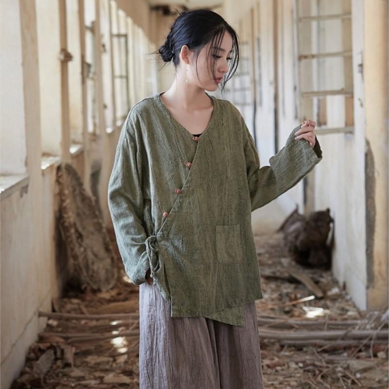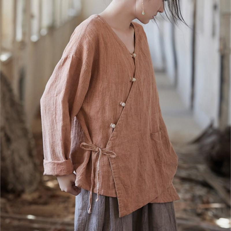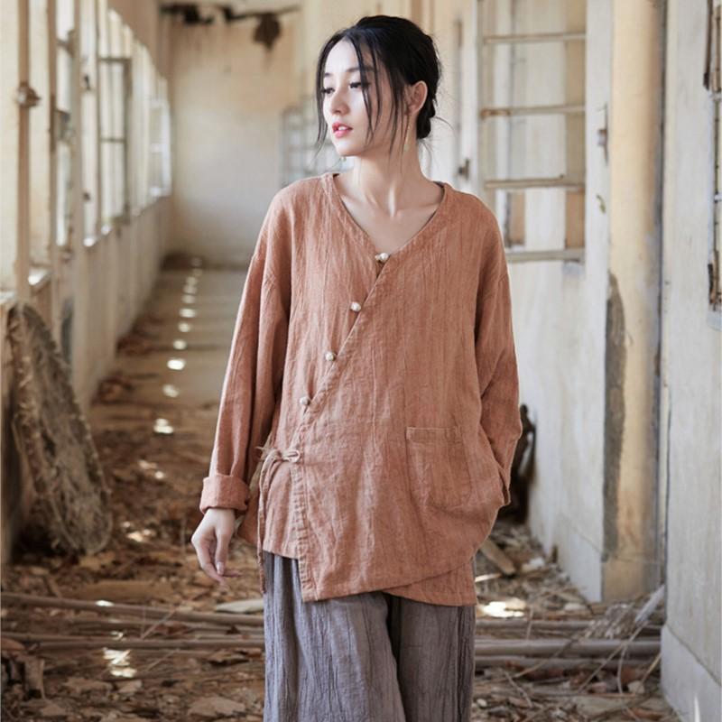 Johnature Женские рубашки на пуговицах в китайском стиле, топы, бандажные весенние блузки, однотонные винтажные женские рубашки