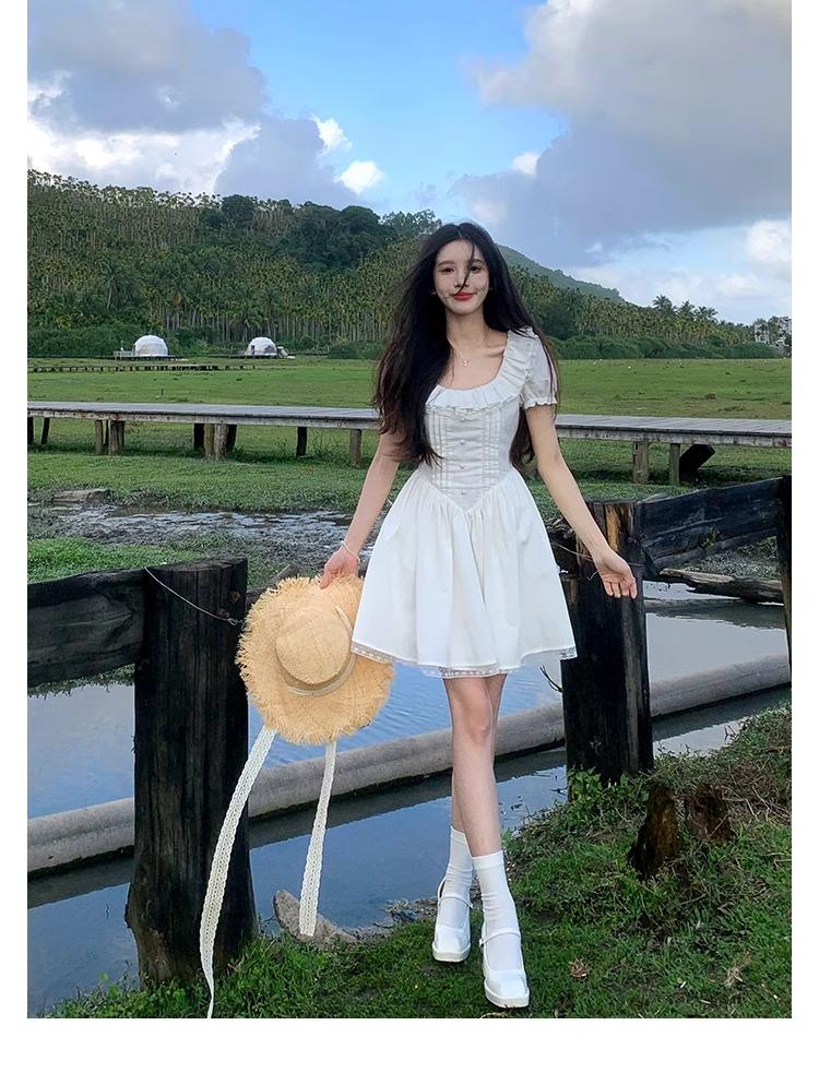 Белое милое элегантное короткое вечернее платье, женское повседневное корейское модное платье с коротким рукавом, кавайное кружевное платье, новинка лета 2024 года