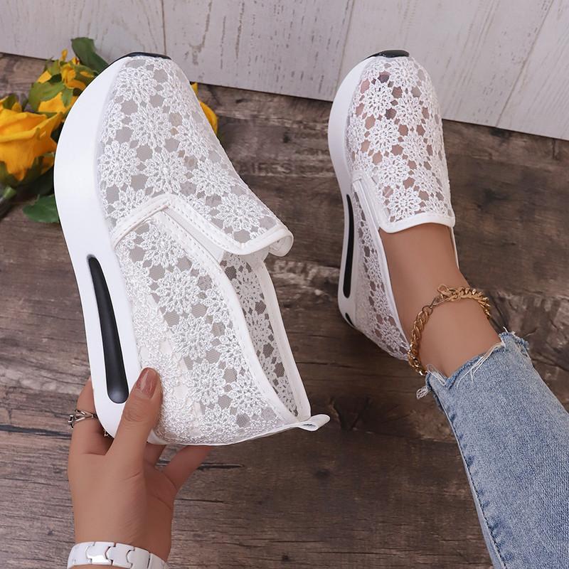 Женские кроссовки с цветочной вышивкой, сетчатые кроссовки для женщин, повседневные удобные туфли без шнуровки, женские туфли на каблуке