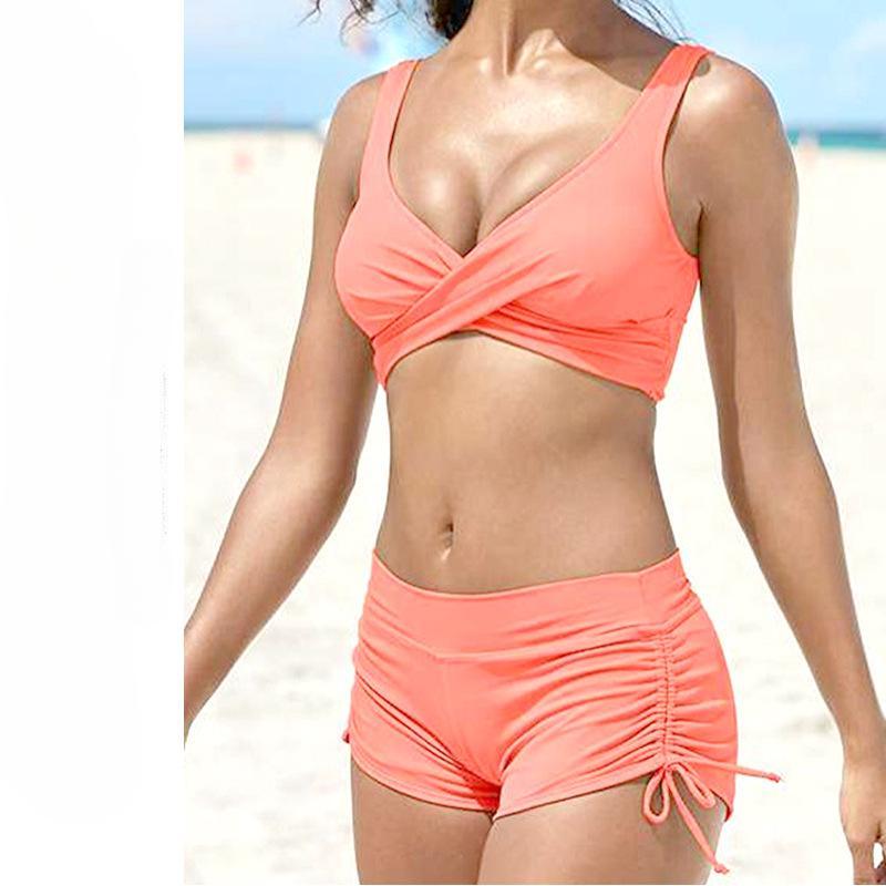 Женский сексуальный купальник из двух частей в европейском и американском стиле, зашнурованный сзади топ с завязками по бокам, шорты-боксеры, комплект купальников, однотонный купальный костюм танкини с принтом — купить товар онлайн с бесплатной доставкой по всему миру!