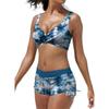 Женский сексуальный купальник из двух частей в европейском и американском стиле, зашнурованный сзади топ с завязками по бокам, шорты-боксеры, комплект купальников, однотонный купальный костюм танкини с принтом