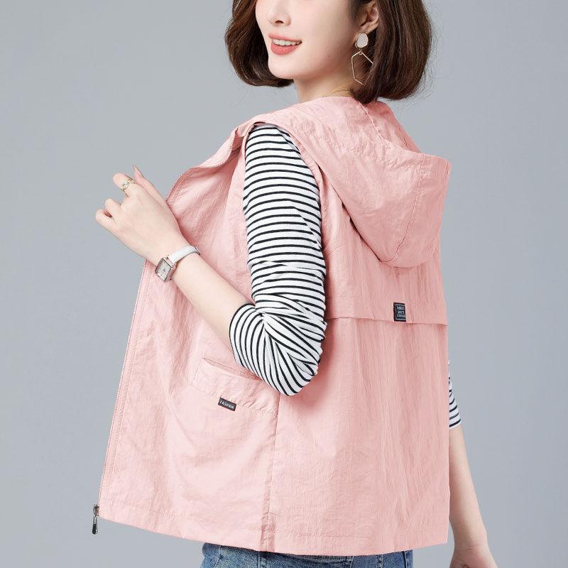 Женская свободная тонкая куртка больших размеров, солнцезащитный жилет с капюшоном, офисный повседневный жилет