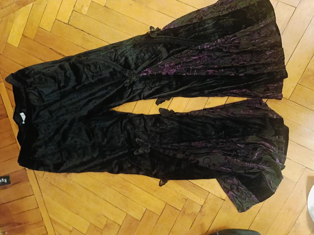 Розегаль Готические брюки-клеш с аппликацией в виде бабочки и цветочным флоком, бархатные лоскутные карманы без застежек