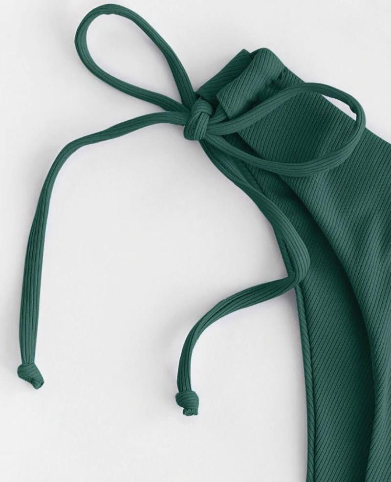 Европейские и американские женщины, сексуальный комплект из двух частей, комплект бикини Sandbeach, однотонный комплект купальников, мягкий топ с завязками по бокам, треугольный купальник, бандажный танкини, купальный костюм