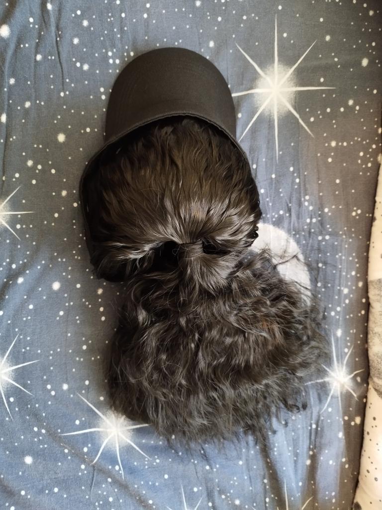 Посылка шла месяц.все целое и парик и сеточка, только я не знаю как правильно закреплять его,мне кажется что не мой размер,мне в нём не комфортно. Волос как натуральный.