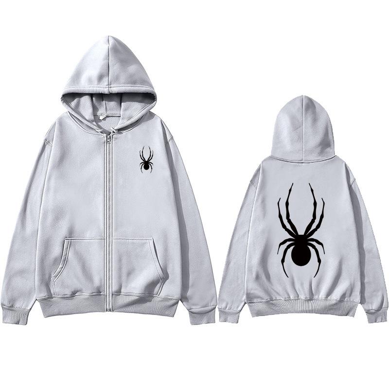 Черная толстовка на молнии с пауком, толстовка большого размера, уличная одежда, женская толстовка, женская толстовка с карманом и длинным рукавом, черная толстовка на молнии с пауком