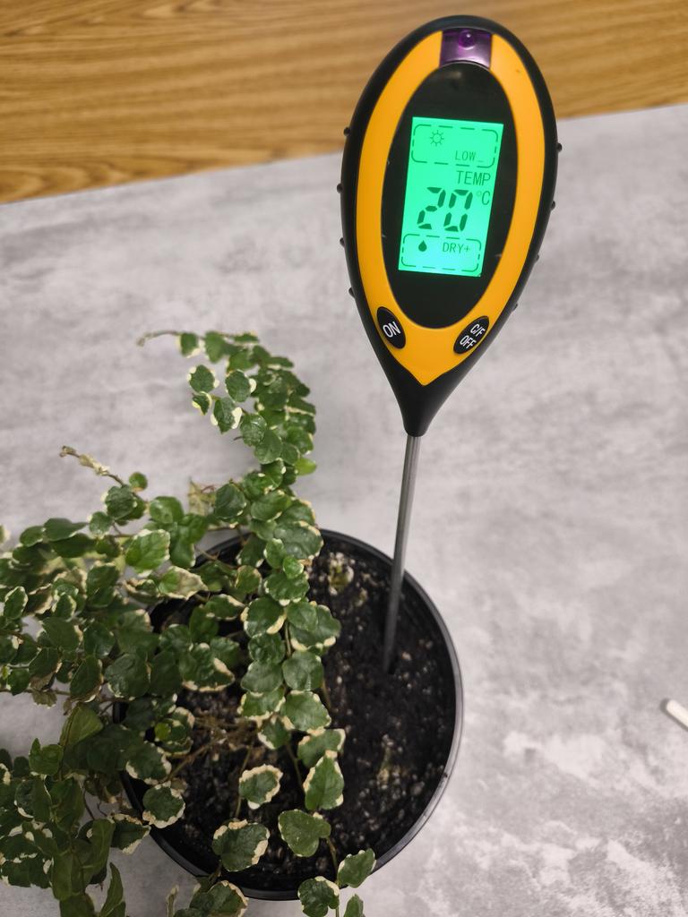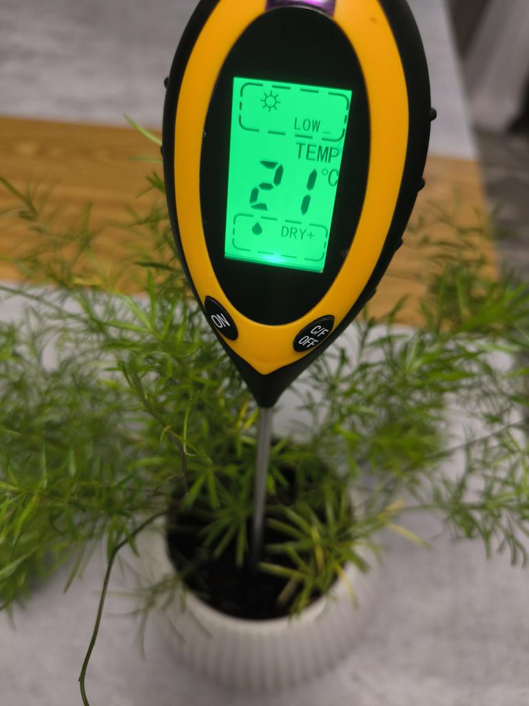 Несколько дней пользуюсь,во все цветы уже натыкала всё показывает сухая земля.Один цветок прям залила водой,земля мокрая как болото,а показывает всё равно сухая.По фото видно,что грунт прям мокрый.Датчик света тоже не работает,фонариком от телефона светила прям в индикатор,всё равно недостаточно света.С ph так же не понятно,вроде что то там ищет,а потом везде ph 7, хотя грунты точно с разным ph,подбирала по отдельности всем цветам. Вопросов нет только к определению температуры,переключается на С⁰ и F⁰ определяет нормально,но я как бы не градусник заказывала... Может кому то повезет и придет без брака,полезная штука для цветоводов.