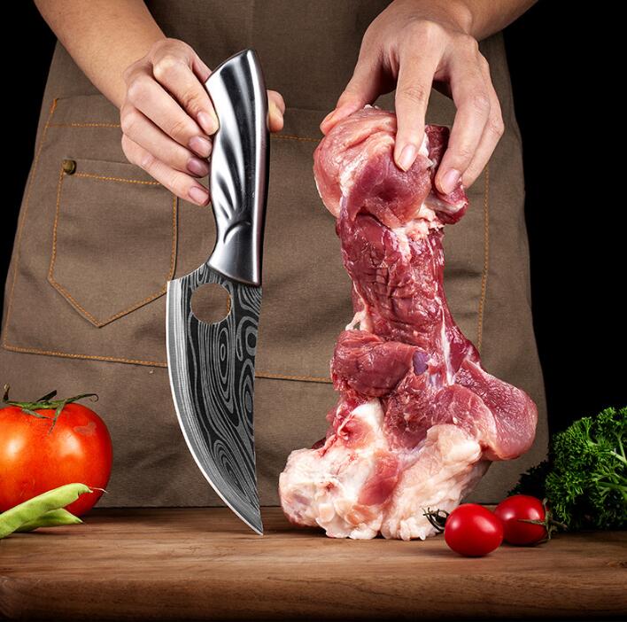 Нож для обвалки из нержавеющей стали с лазерным узором из дамасской стали Кухонный нож из нержавеющей стали Кованый нож для обвалки Маленький ятаган Нож для мяса