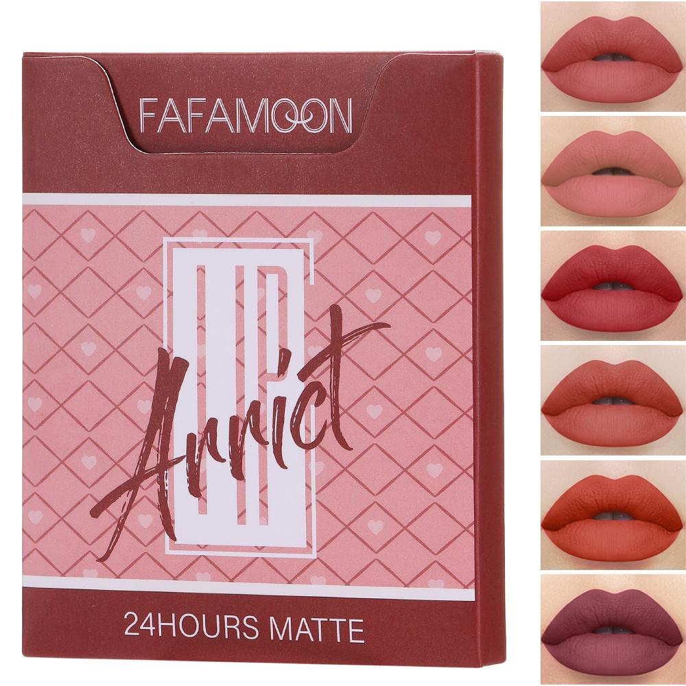 6 шт./компл. матовая глазурь для губ, легко окрашиваемая без липкой чашки, блеск для губ, набор помад