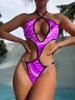 Европейские и американские женщины, сексуальный сплошной цвет, цельный купальник, монокини с вырезами спереди и крестом, купальник с открытой спиной, бикини, модный купальный костюм с цепочкой