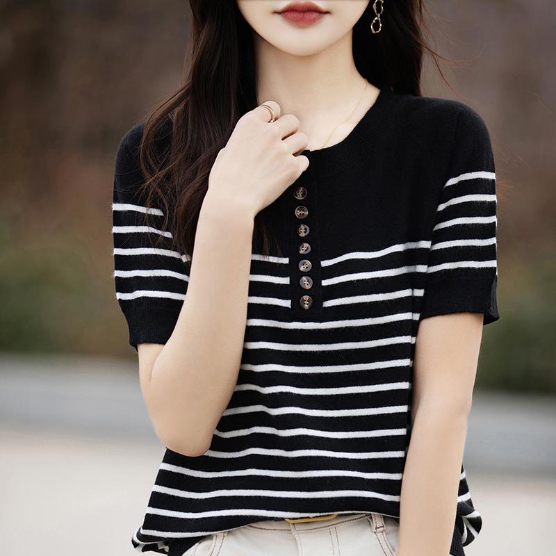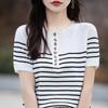 Женская вязаная футболка MODERN NEW SAGA, летняя вязаная рубашка, полосатые футболки с короткими рукавами, пуловер с круглым вырезом, вязаные топы — купить товар онлайн с бесплатной доставкой по всему миру!