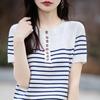 Женская вязаная футболка MODERN NEW SAGA, летняя вязаная рубашка, полосатые футболки с короткими рукавами, пуловер с круглым вырезом, вязаные топы
