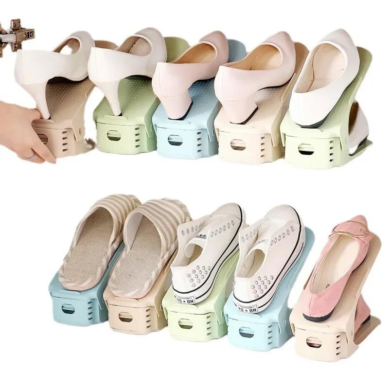 Регулируемая двухслойная полка для обуви, 2 шт., утолщенная и компактная полка для хранения обуви, полка для хранения обуви на высоком каблуке с плоским дном