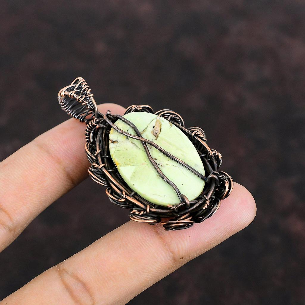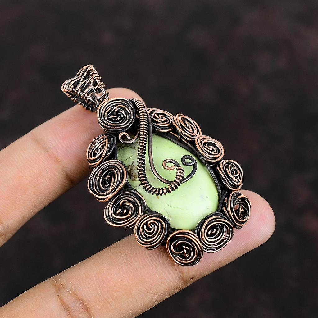Подвеска из лимонного хризопраза, оригинальный драгоценный камень, подвеска из медной проволоки, подвеска ручной работы, подвеска из медной проволоки, подарок для женщин
