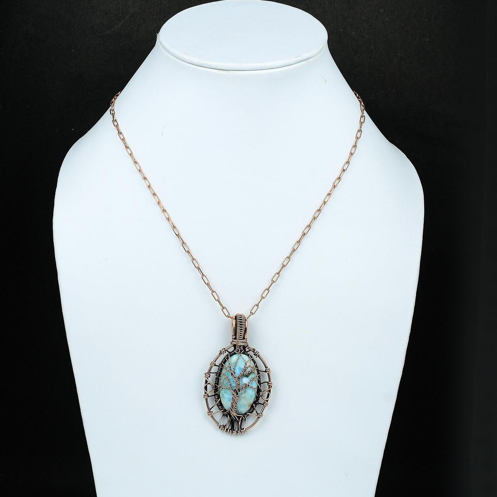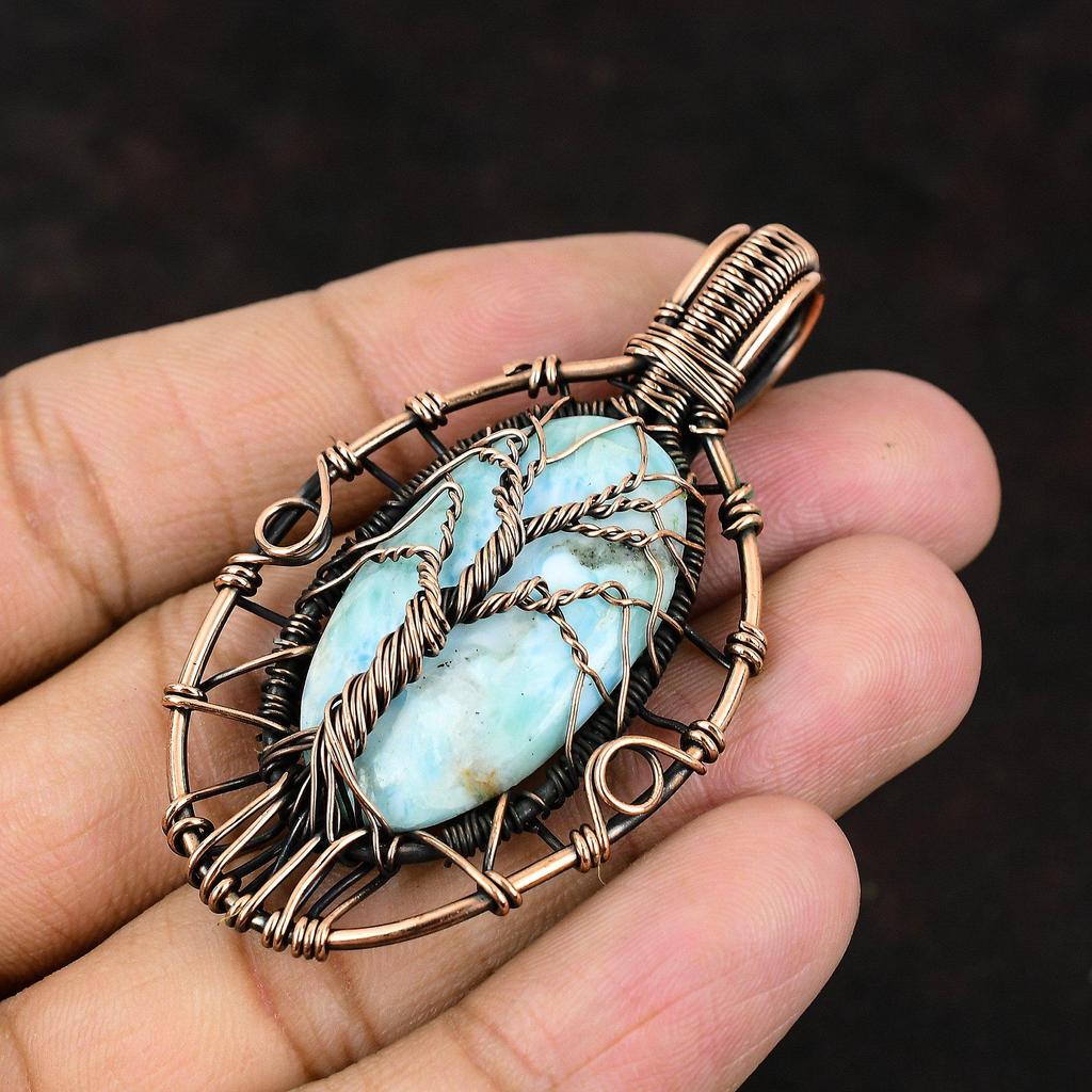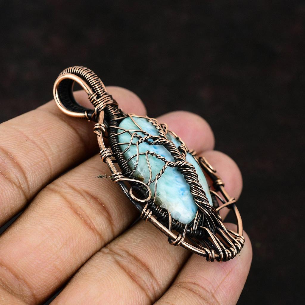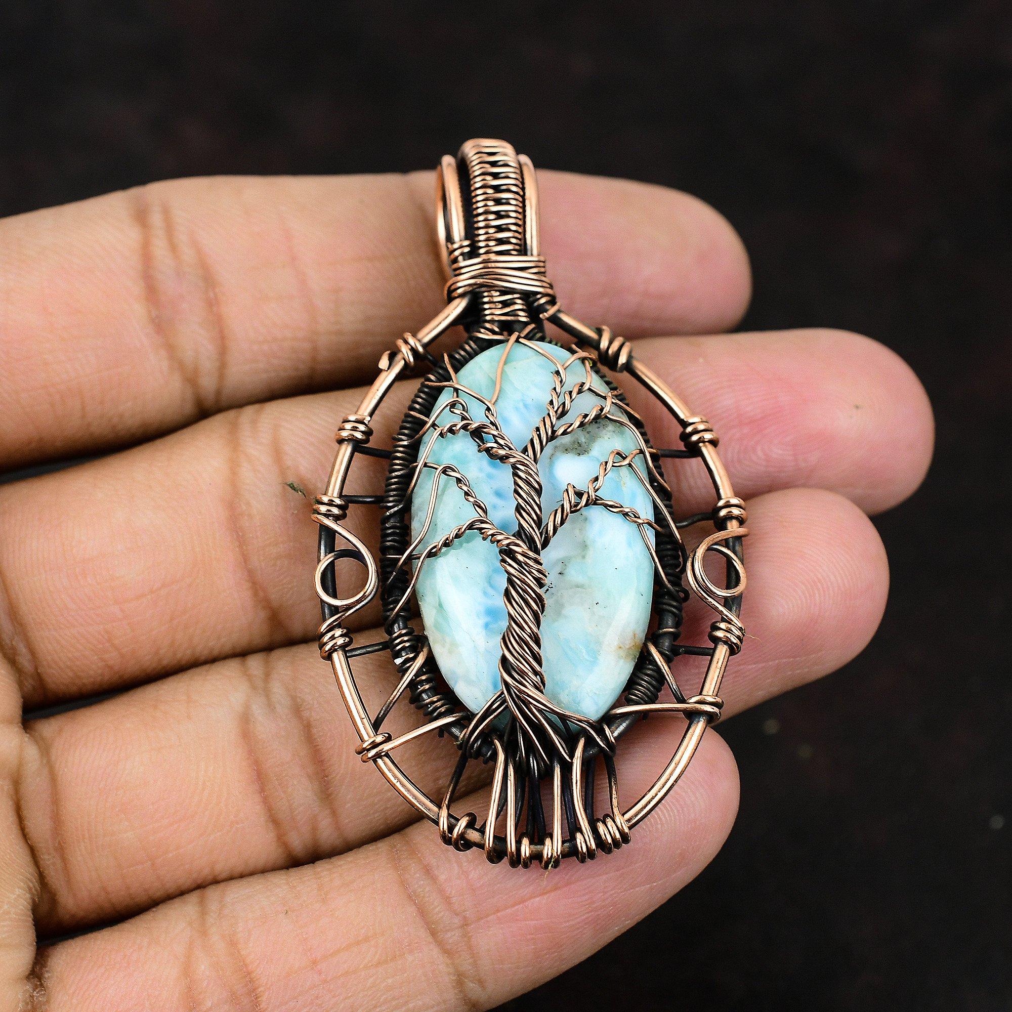 Древо Жизни Ларимар Драгоценный Камень Кулон Медная Проволока Обернутые Ювелирные Изделия Ювелирные Изделия из Медной Проволоки Дизайнерские Ювелирные Изделия Ручной Работы Подарок Для Ее Подарок Для Матери