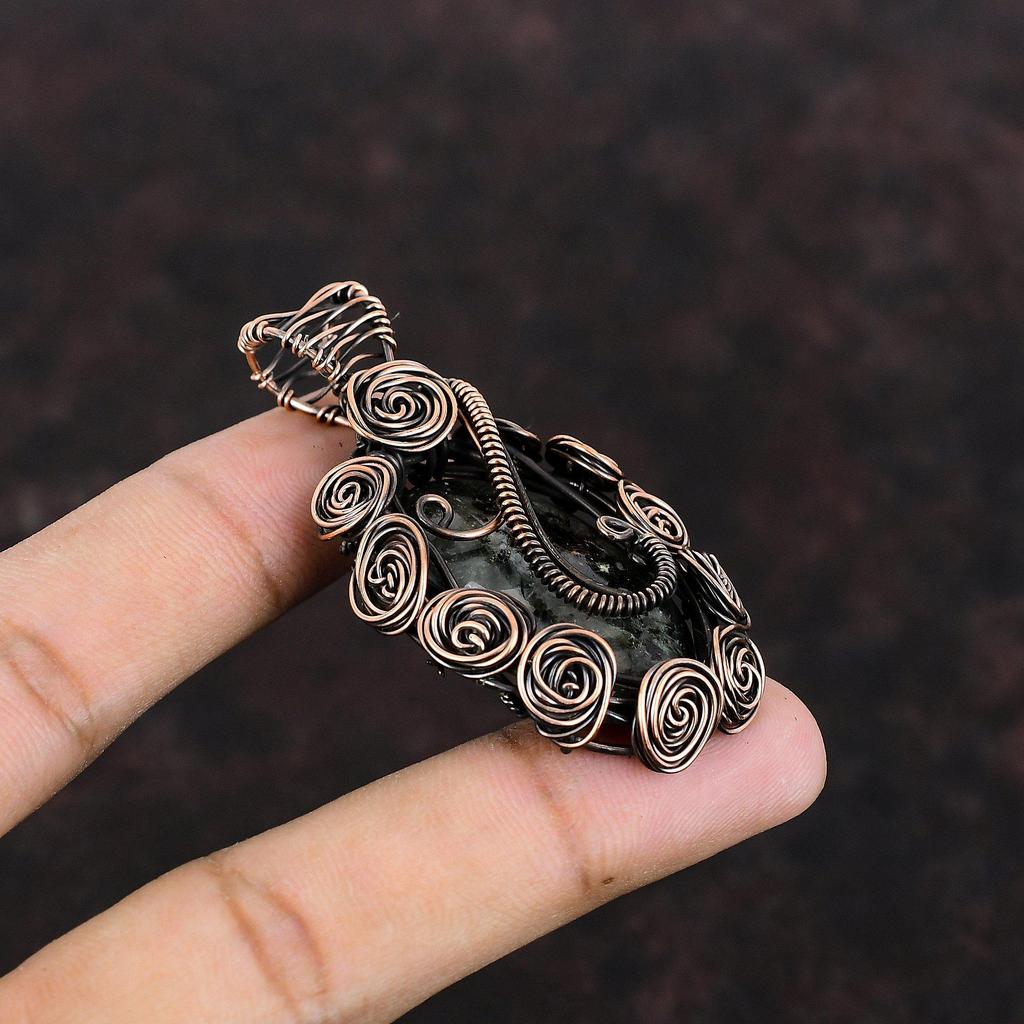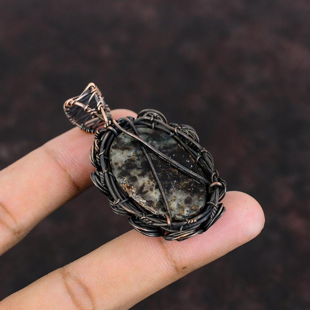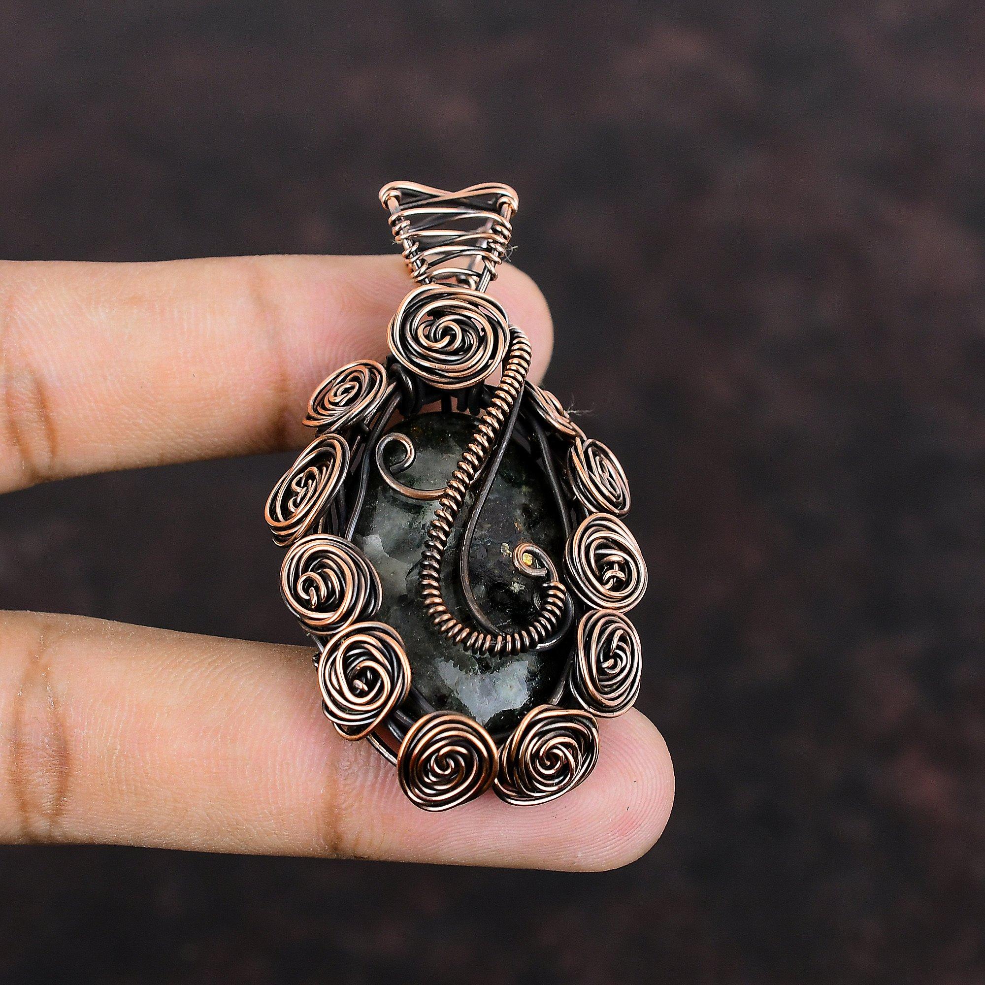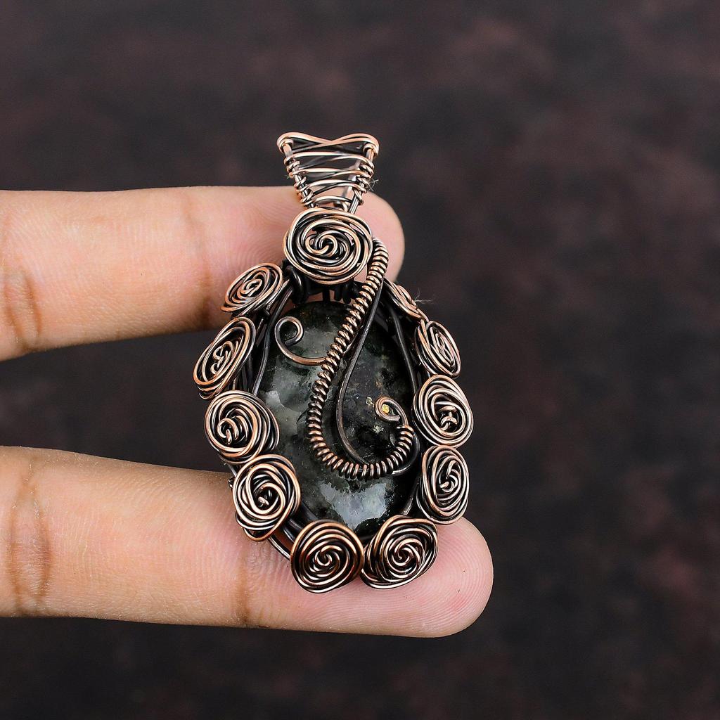 Кулон с астрофиллитом, медная проволока, кулон, драгоценный камень, медные украшения, кулон ручной работы в стиле бохо, проволочная обмотка, ювелирные изделия с астрофиллитом, подарок для мамы