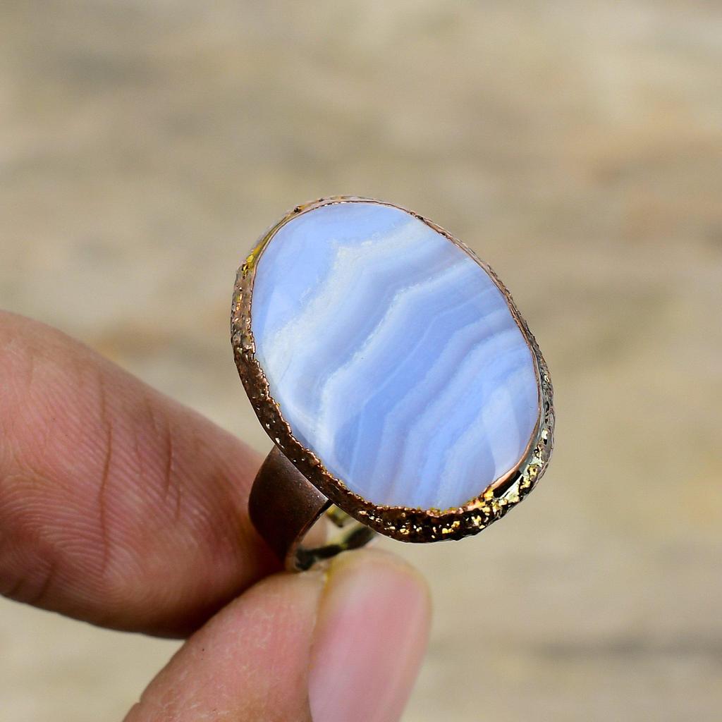 Кольцо с голубым кружевным агатом, гальванопластическое медное кольцо, регулируемые кольца, ювелирные изделия ручной работы, кольцо с драгоценным камнем, гальванопластическое медное ювелирное изделие, подарок на годовщину — купить товар онлайн с бесплатной доставкой по всему миру!