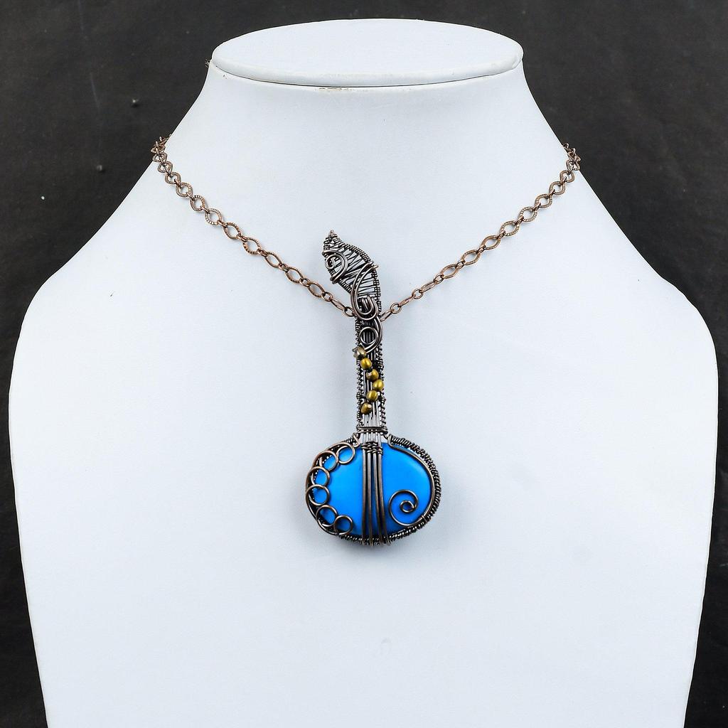 Sleeping Beauty Turquoise Pendant Copper Wire Wrapped Pendant Guitar Jewelry Handmade Music Instrument Pendant Gift For Him Gemstone Jewelry