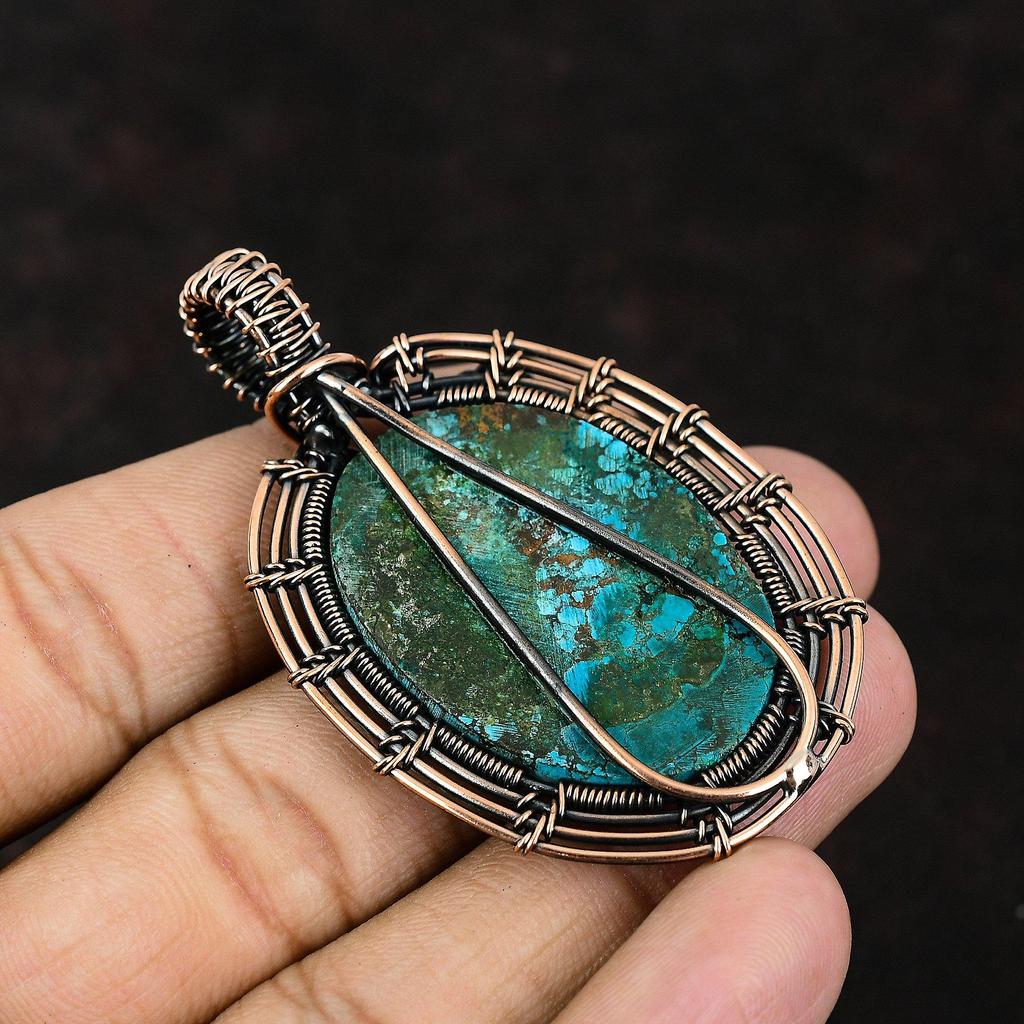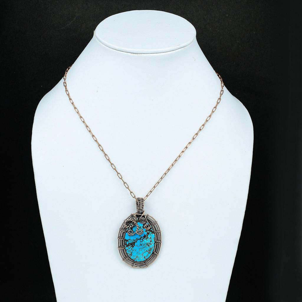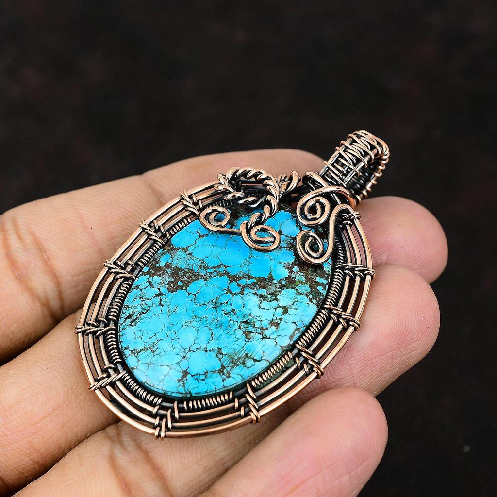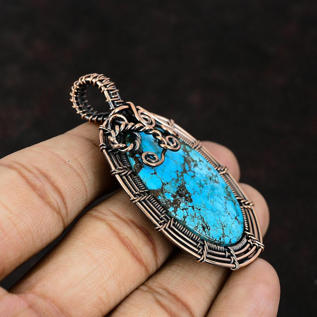 Тибетский бирюзовый медный кулон, медная проволока, кулон, кулон с драгоценным камнем, бирюзовый ювелирный подарок для мамы, ювелирные изделия ручной работы из проволоки