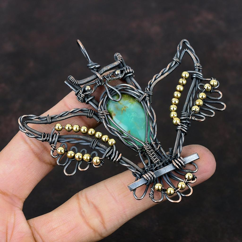 Chrysoprase Pendant Copper Wire Wrapped Pendant Owl Pendant Copper Jewelry Handmade Pendant Wire Wrap Jewelry Gemstone Pendant Wedding Gift