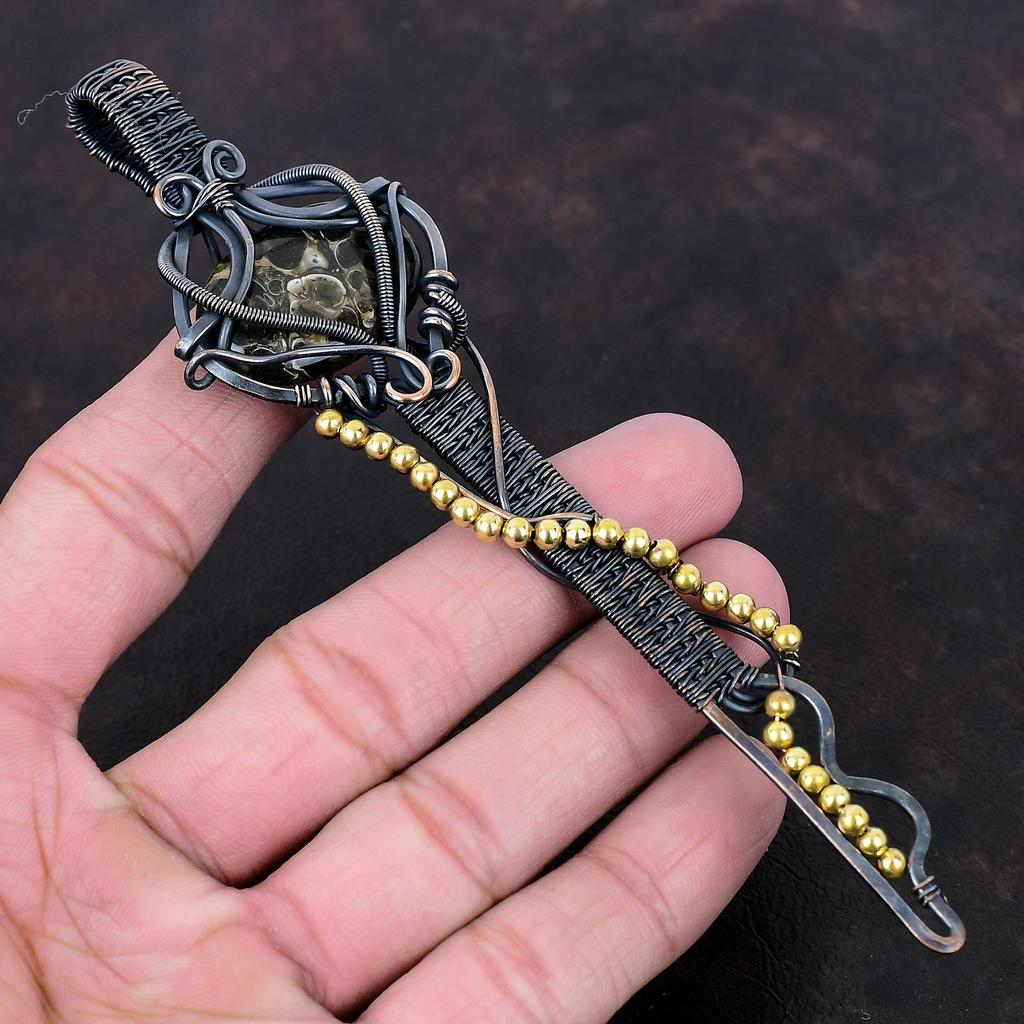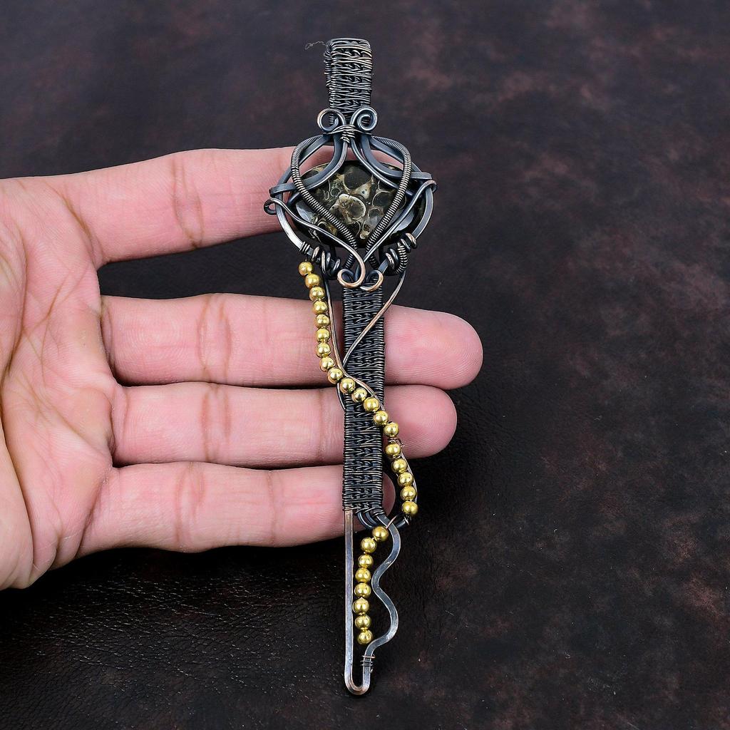 Turritella Agate Pendant Copper Wire Wrapped Gemstone Pendant Key Pendant Copper Jewelry Handmade Pendant Gift For Women Birthstone Pendants