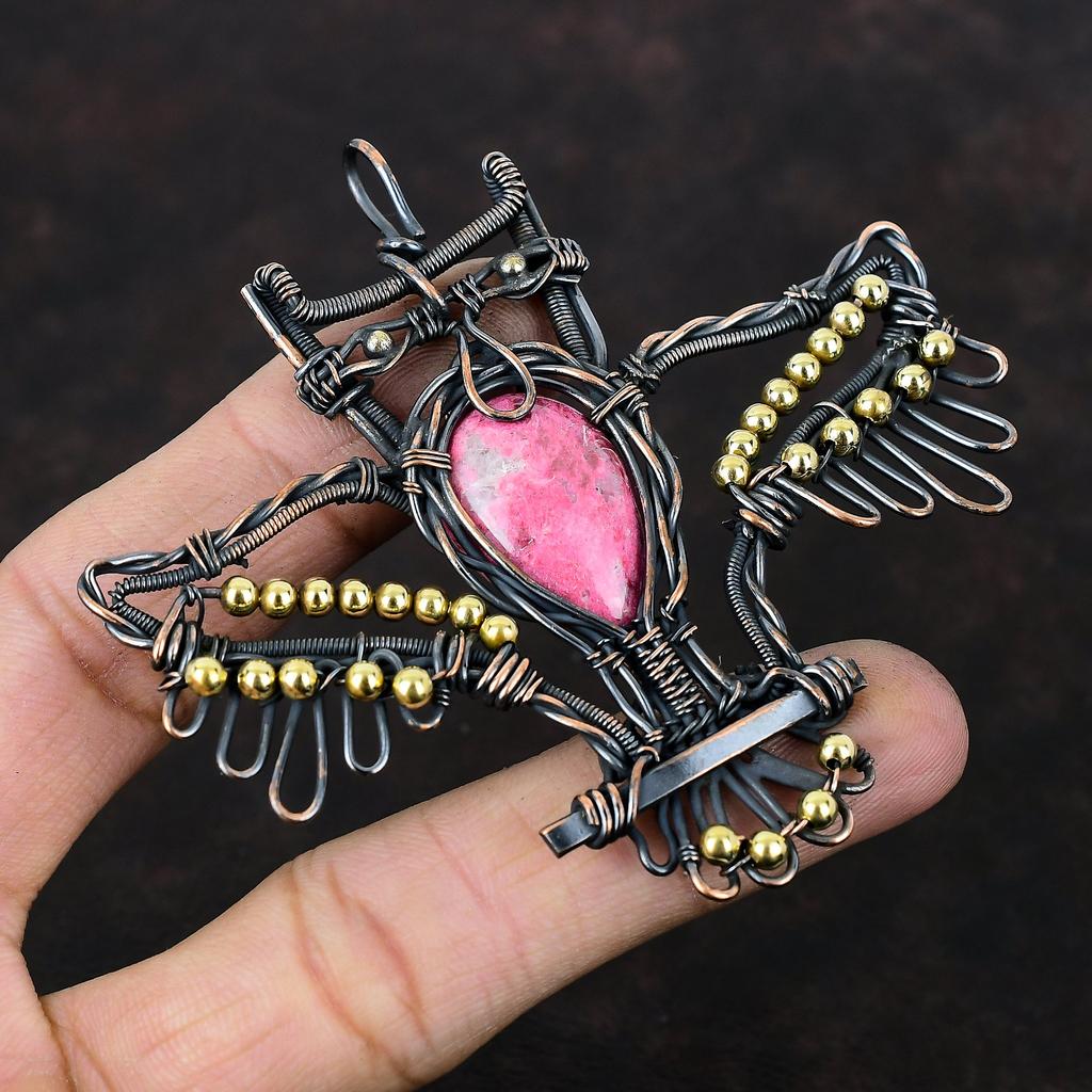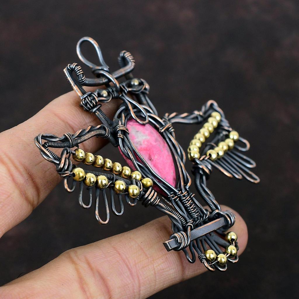 Thulite Pendant Copper Wire Wrapped Pendant Handmade Copper Jewelry Owl Design Pendant Natural Thulite Jewelry Gemstone Pendant Gift For Mom