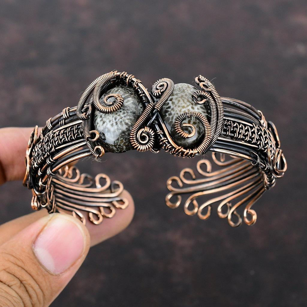 Браслет-манжета со скатом и кораллом, браслет из медной проволоки, ювелирные изделия ручной работы, регулируемый браслет, подарок для друга, браслет с драгоценными камнями, медные украшения