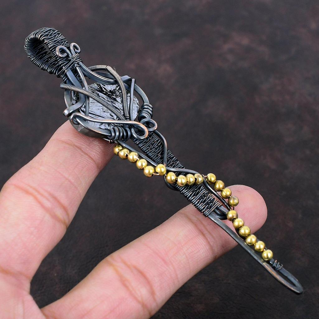 Необработанный кулон из шунгита, обернутый медной проволокой, подвеска-ключ, ювелирное изделие ручной работы, подвеска из драгоценного камня, изящное ювелирное изделие из медной проволоки, подарок на помолвку