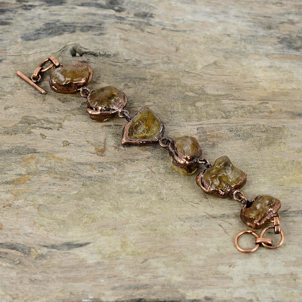 Грубый браслет с цитрином, медный браслет, изготовленный гальваническим методом, регулируемый браслет-цепочка, ювелирное изделие, изготовленное гальваническим способом, подарок для нее, драгоценный камень, ювелирные изделия ручной работы