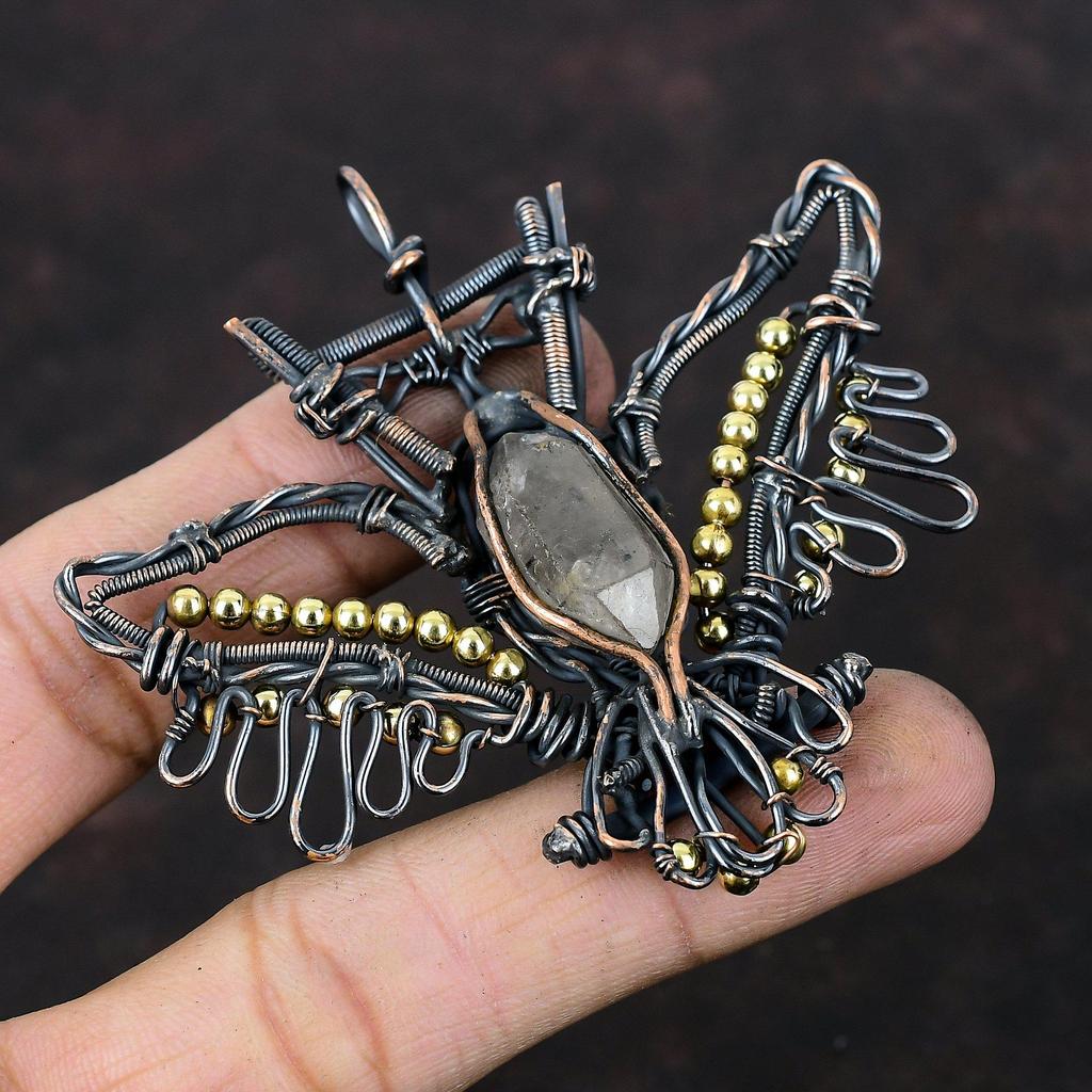 Подвеска с бриллиантами Herkimer, медная проволока, обернутая драгоценным камнем, подвеска в виде совы, проволочная обмотка, ювелирные изделия ручной работы, медные украшения, подарок для мамы