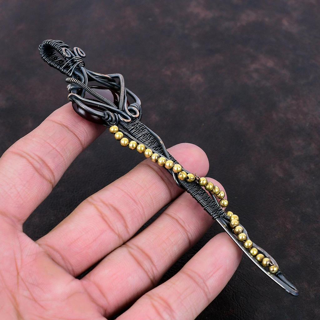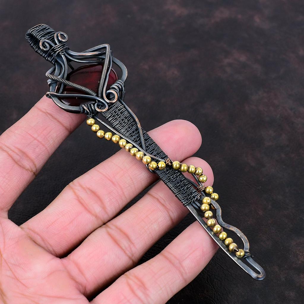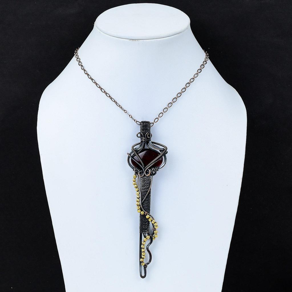 Подвеска из красного огненного лабрадорита, обернутая медной проволокой, ручная работа, бохо-украшение, подвеска-ключ, подвеска из натурального драгоценного камня, медное украшение для подарка