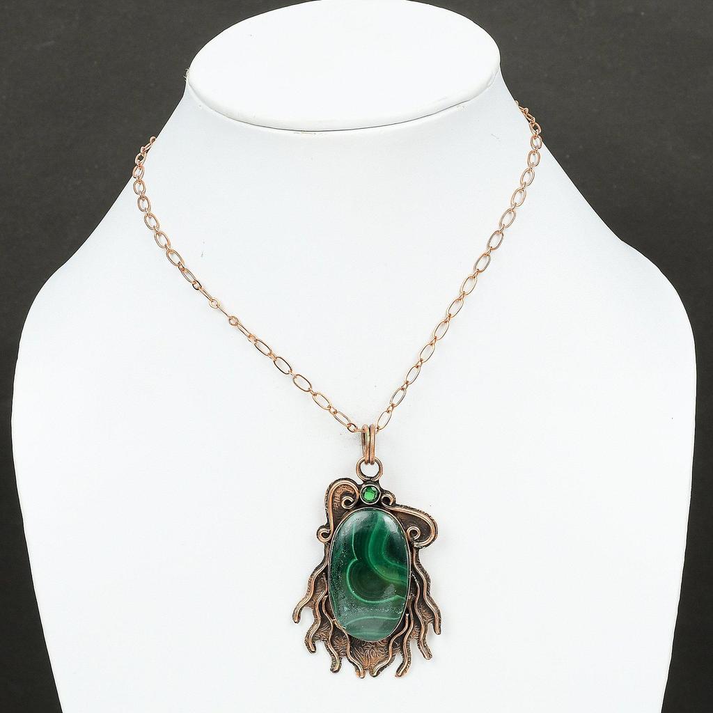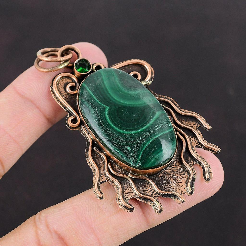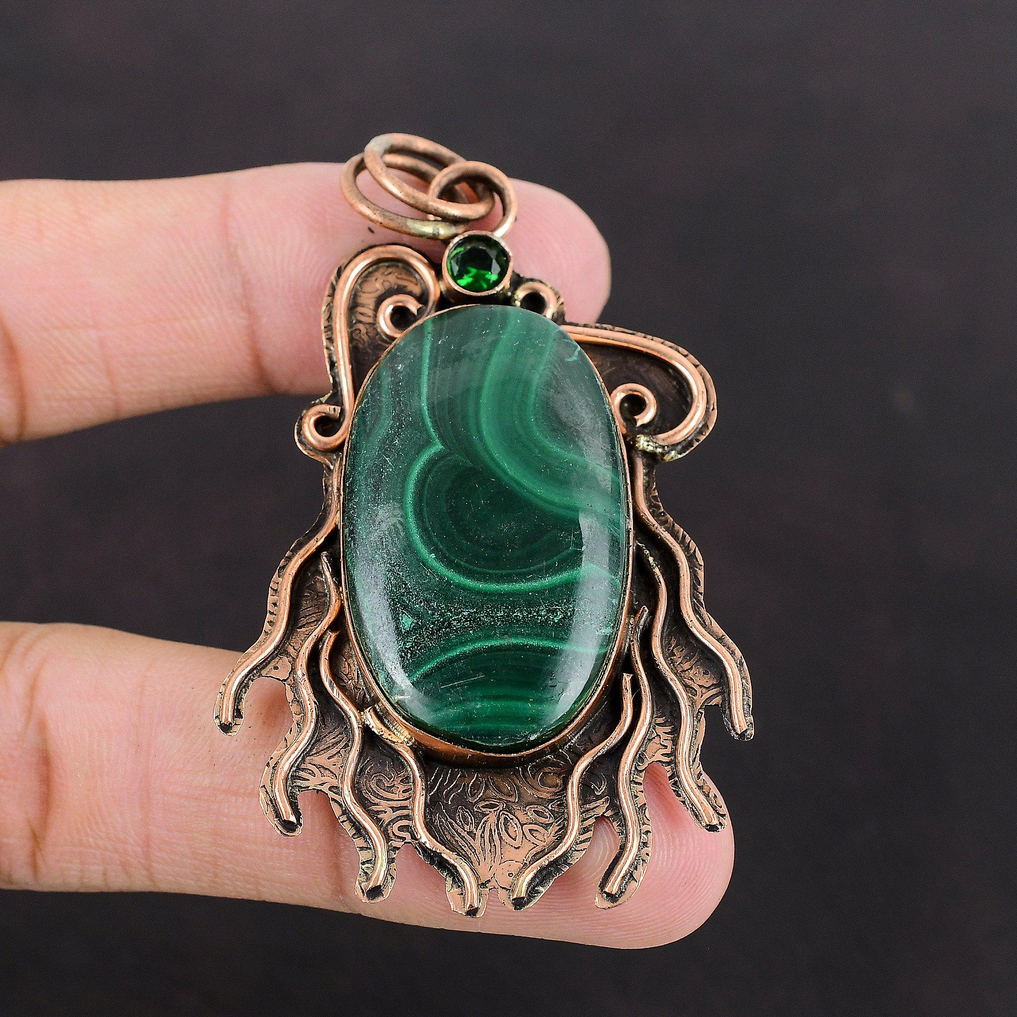 Подвеска из малахита, подвеска из хромдиопсида, медная подвеска, подвеска из драгоценного камня, новинка ручной работы, подвеска из меди, дизайнерское ювелирное изделие, подарок другу