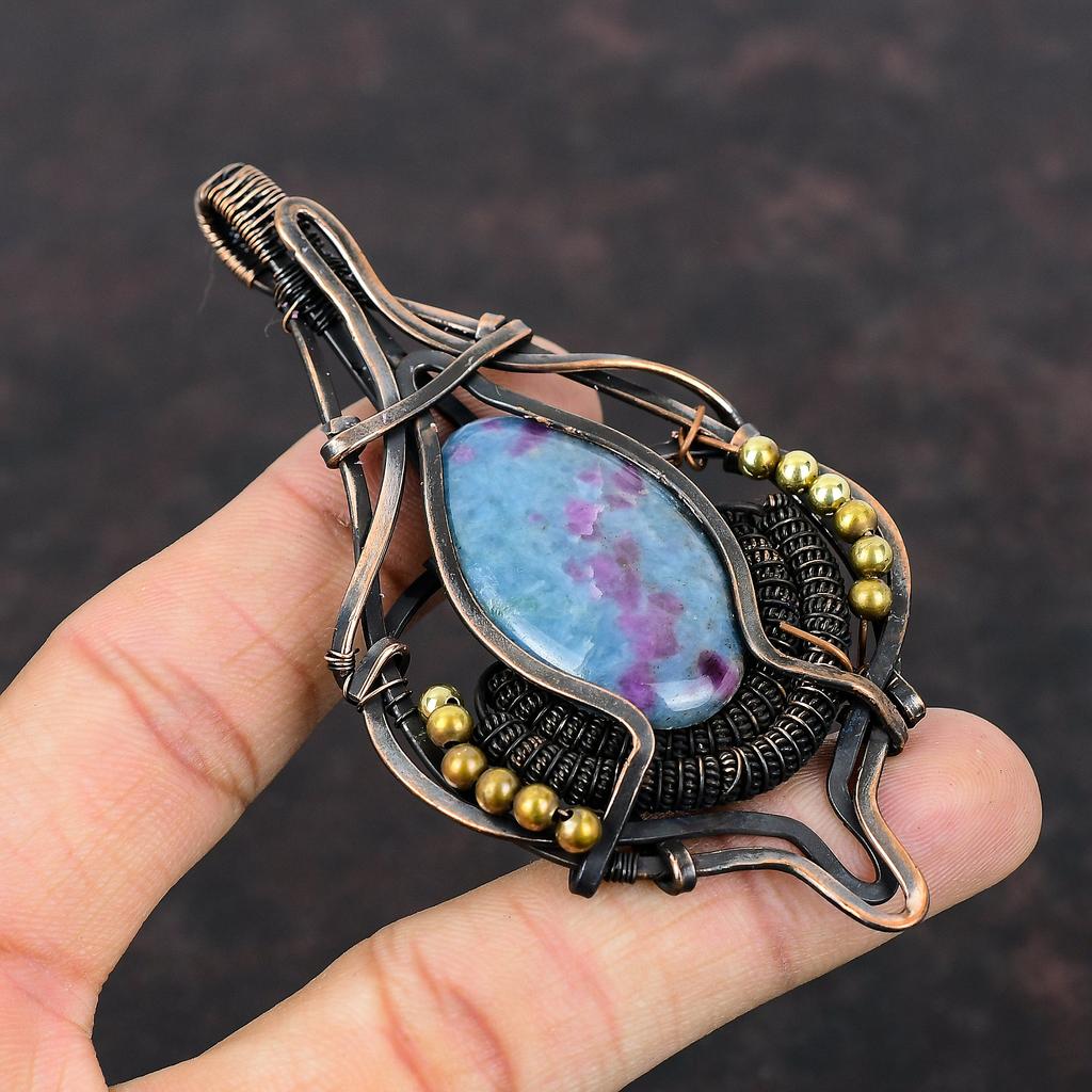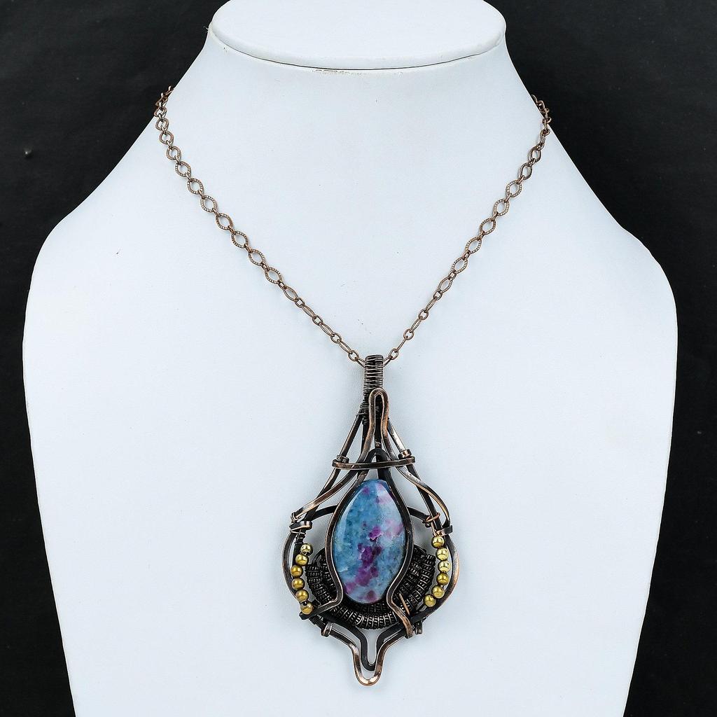 Ruby In Blue Kyanite Pendant Copper Wire Wrapped Gemstone Pendant Copper Designer Jewelry Handmade Pendant Wire Wrap Jewelry Gift For Mother