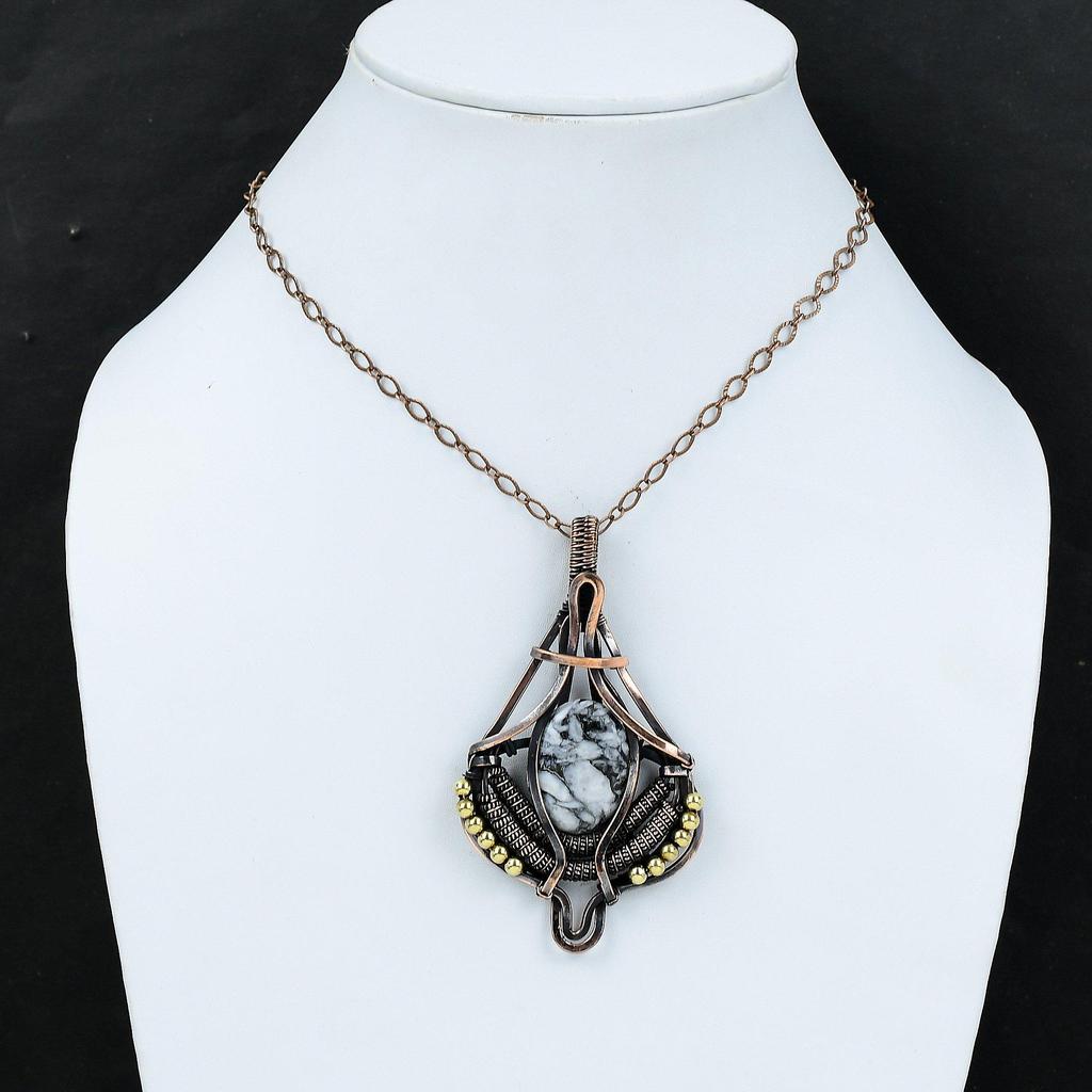 Подвеска из яшмы Pinolith, обернутая медной проволокой, подвеска из драгоценного камня Pinolith, ювелирные изделия из яшмы Pinolith, женская подвеска ручной работы, подарок для нее, ювелирные изделия из медной проволоки