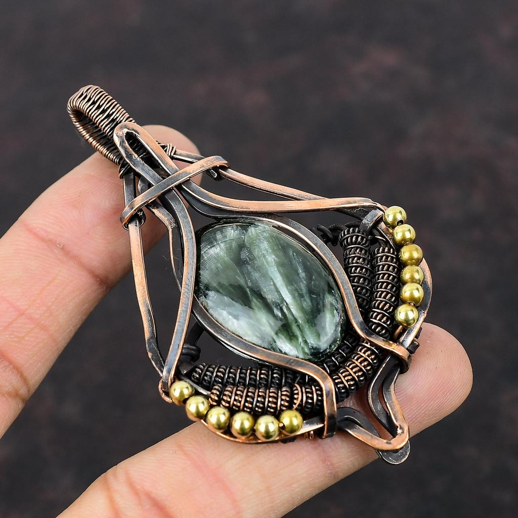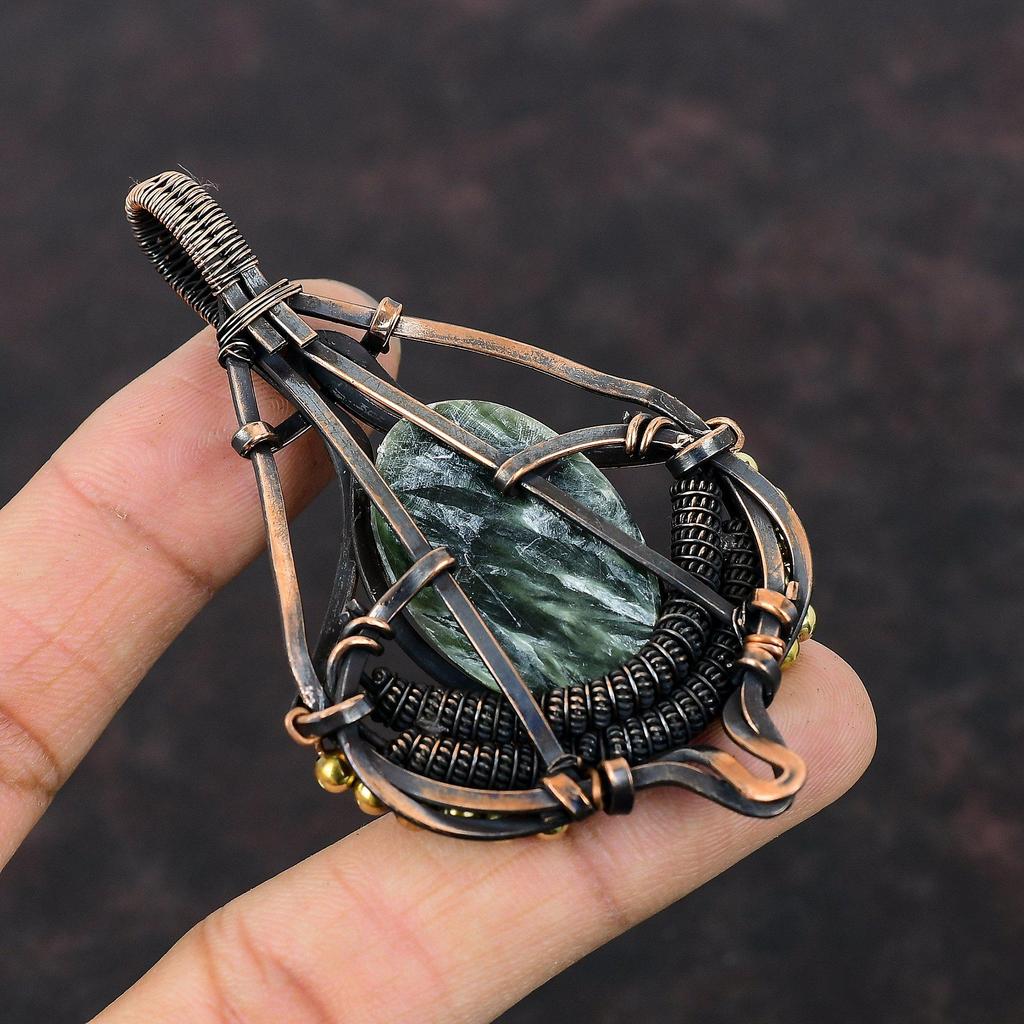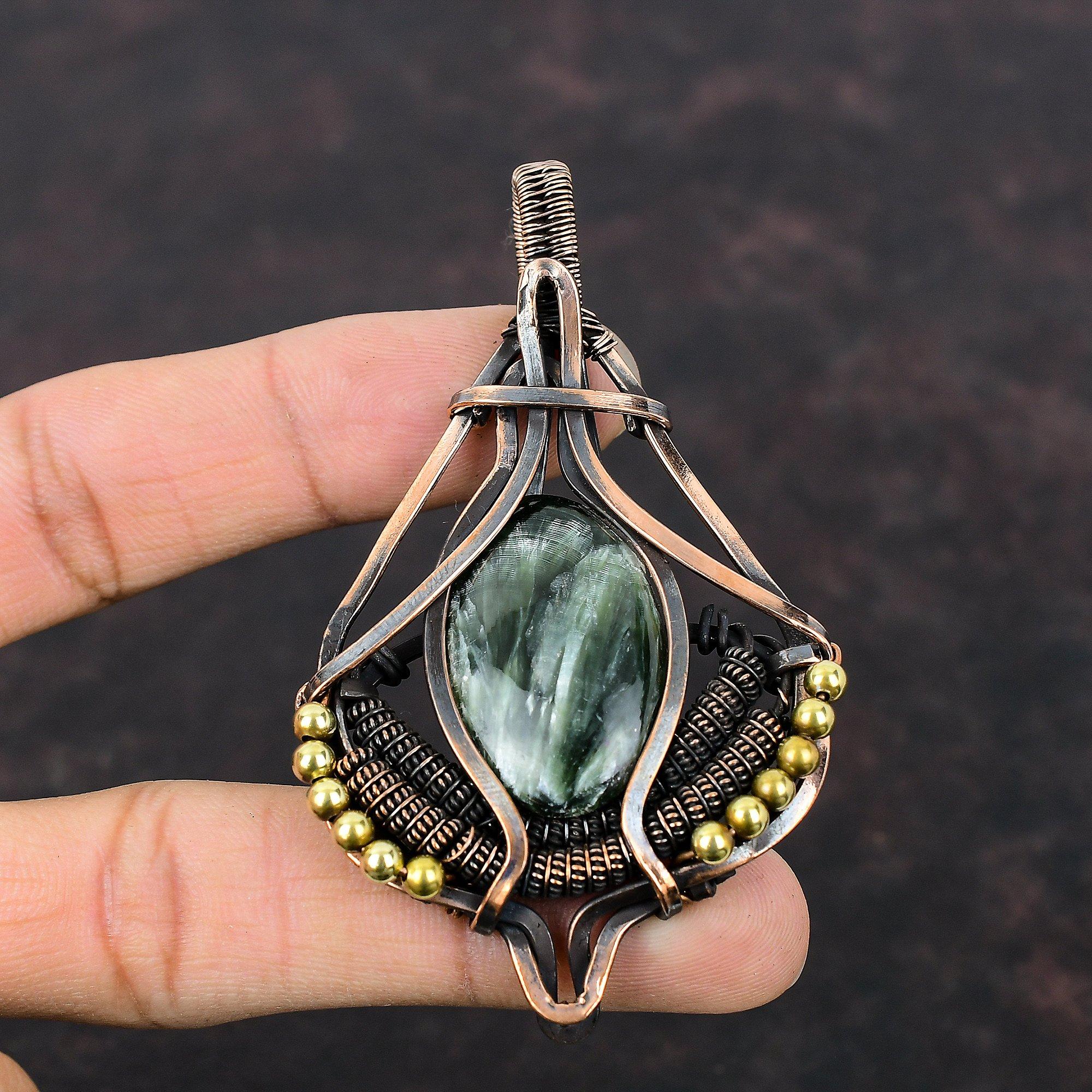 Подвеска из серафинита, обмотанная медной проволокой, Подвеска из драгоценного камня, Украшения ручной работы, Подвеска, обмотанная проволокой, Изящные медные украшения, Подарок для мамы