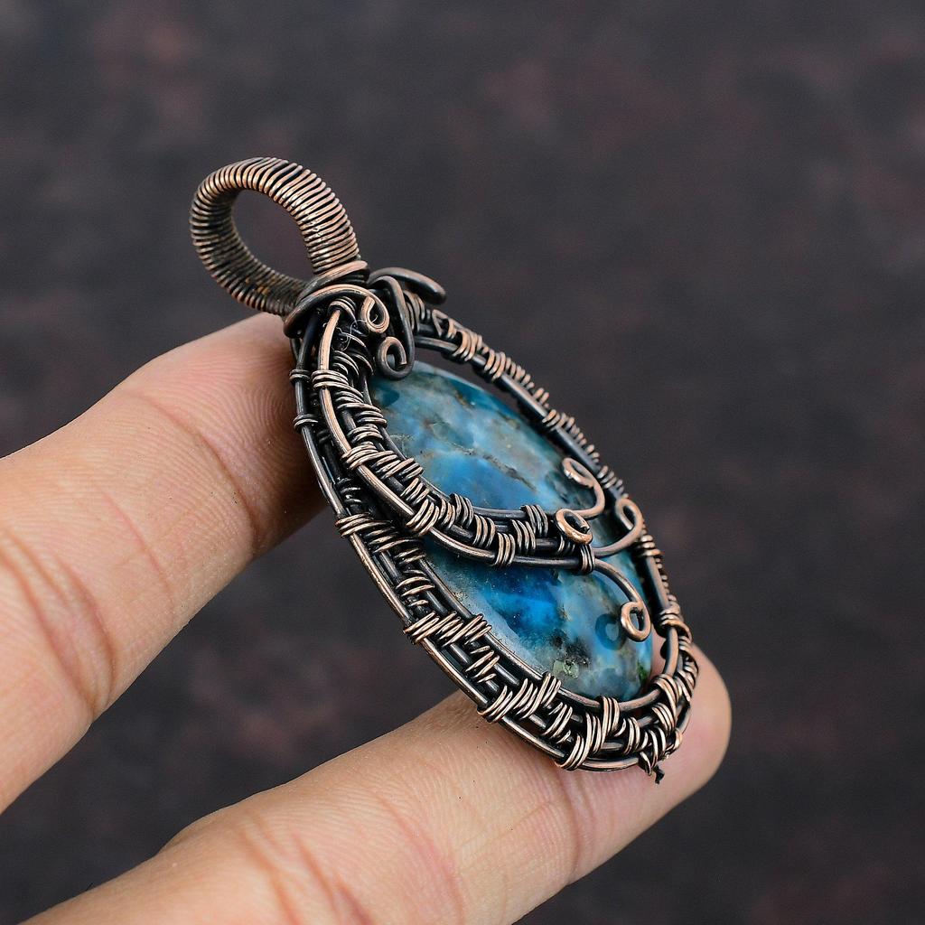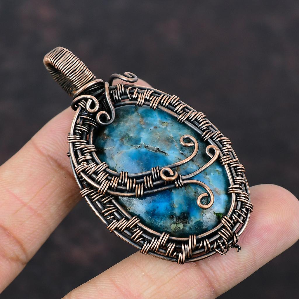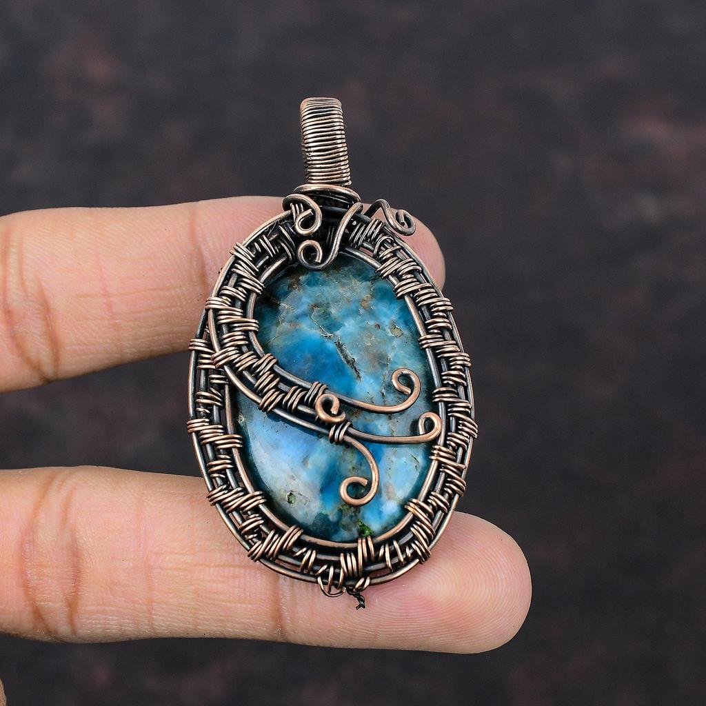 Неоновый апатитовый кулон, обернутый медной проволокой, драгоценный камень, неоновый апатит, ювелирные изделия ручной работы, медная проволока, кулон с камнем по рождению, подарок для мамы