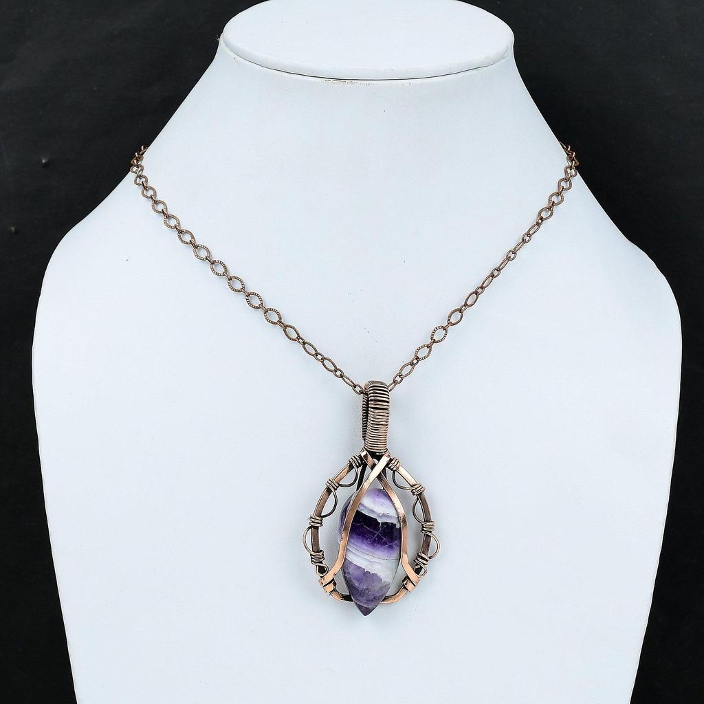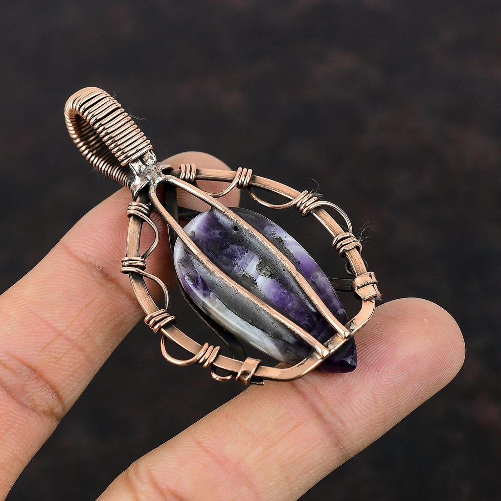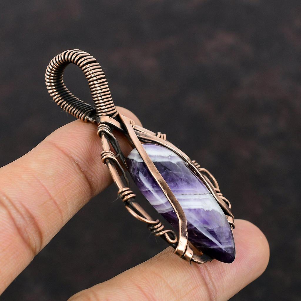 Подвеска с шевроном и аметистом, медная проволока, кулон с драгоценным камнем, ювелирные изделия из медной проволоки, кулон ручной работы, ювелирное изделие с шевроном и аметистом, подарок для мамы