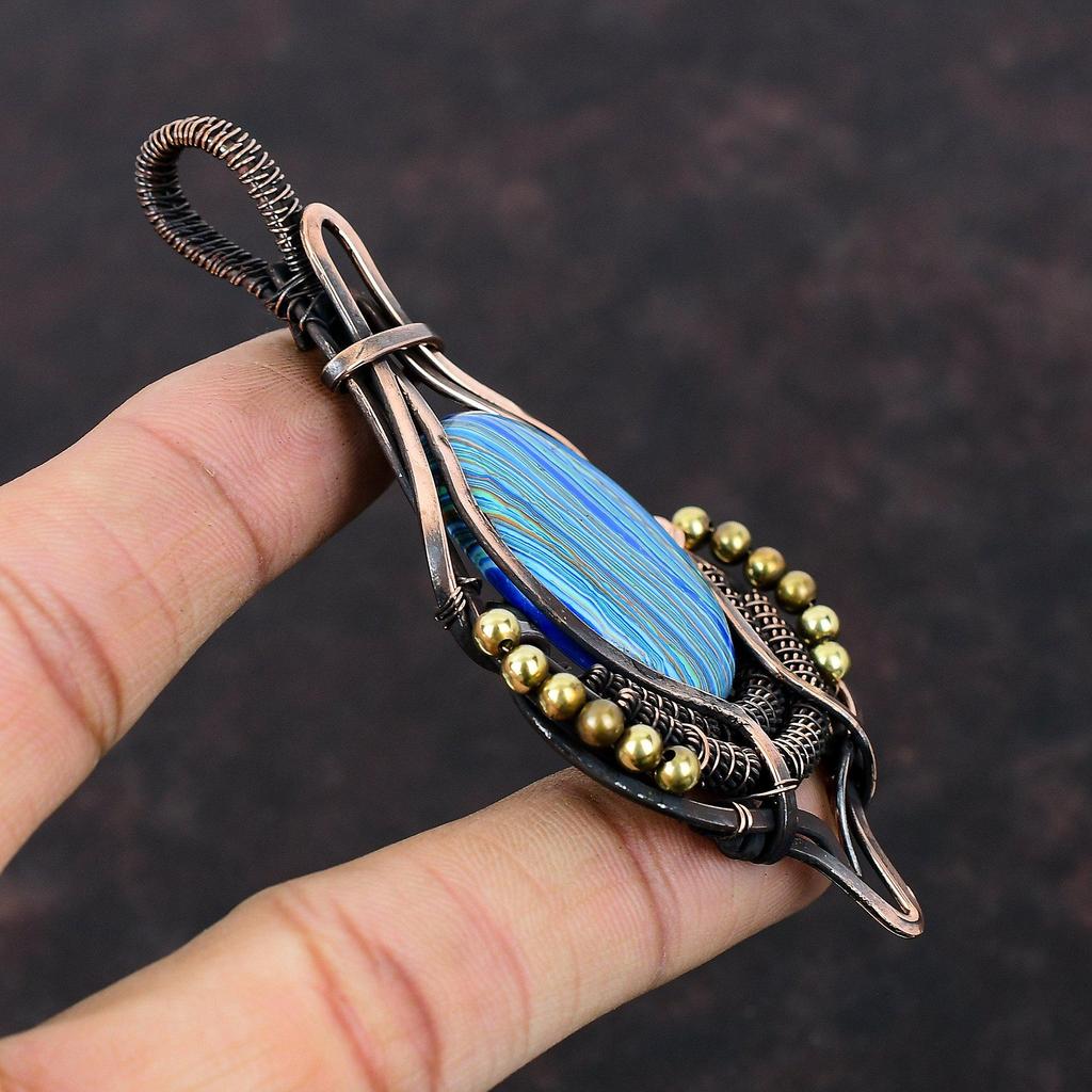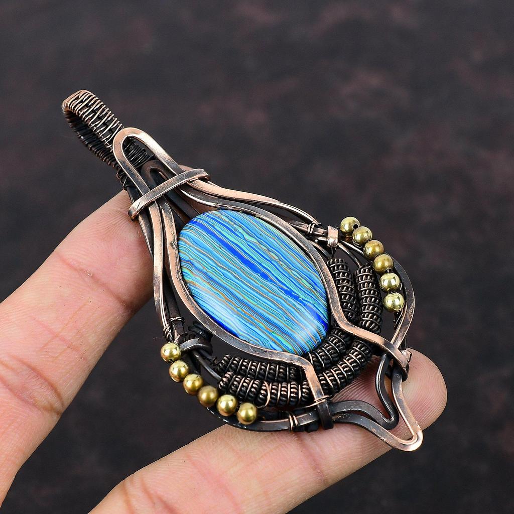 Подвеска Rainbow Calsilica, обернутая медной проволокой, подвеска Rainbow Calsilica Gemstone, ювелирные изделия ручной работы, обернутая медной проволокой, для подарка