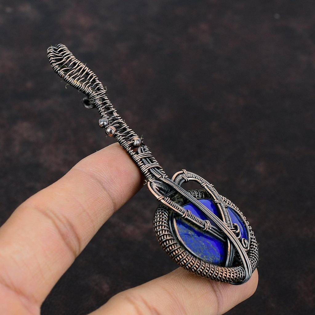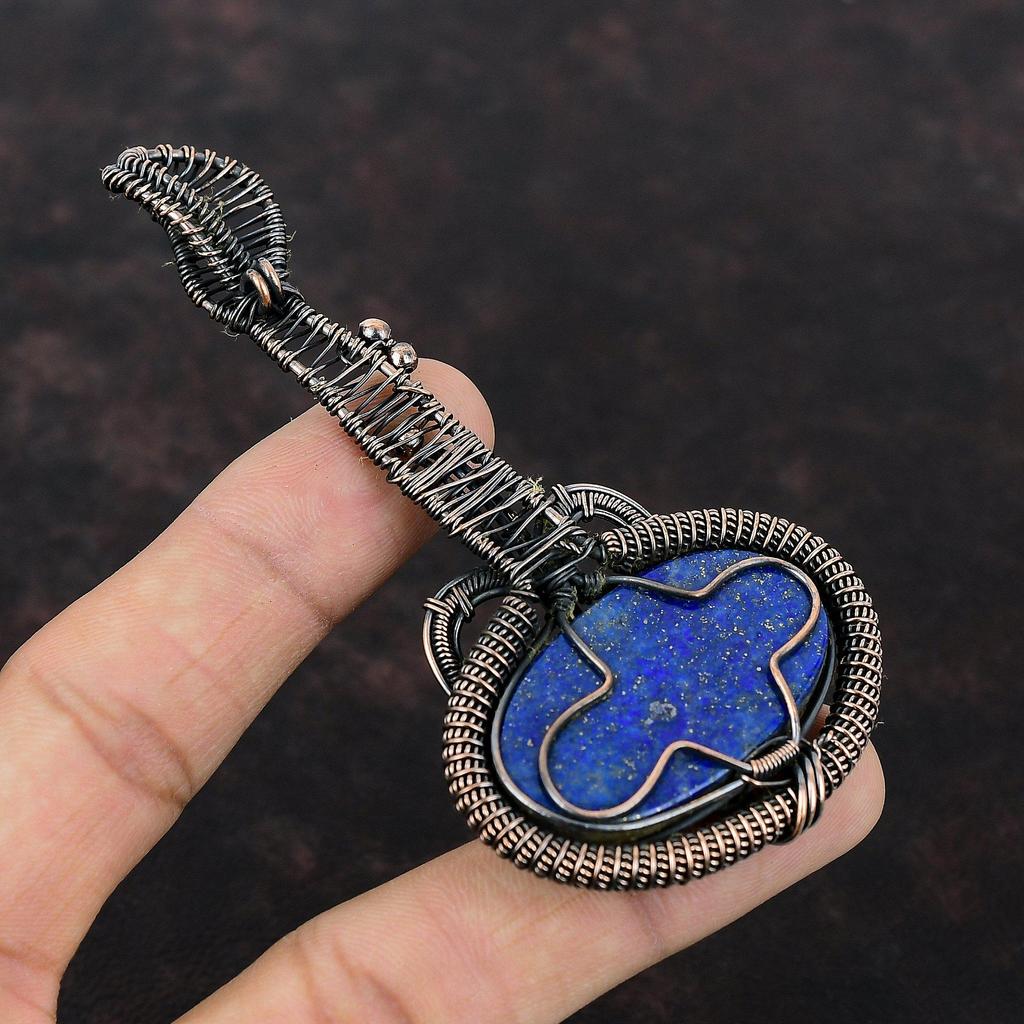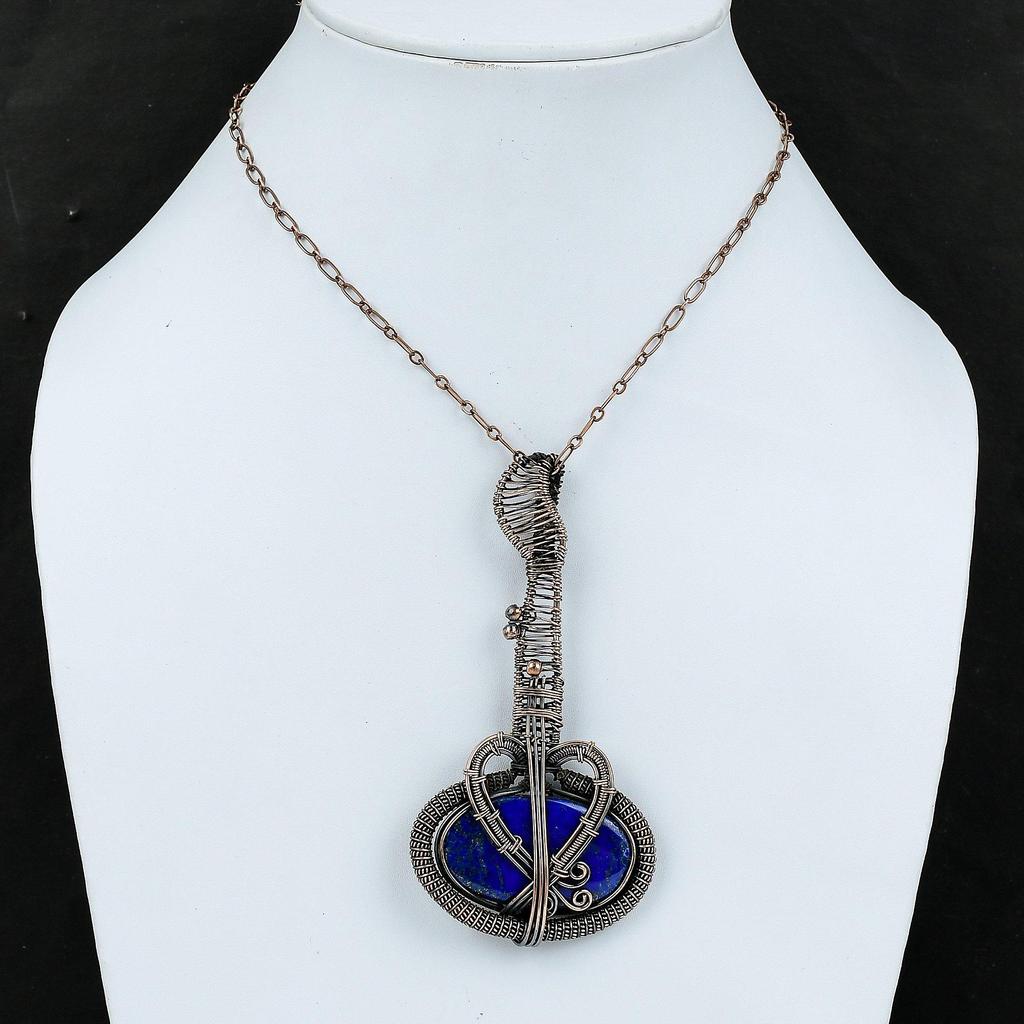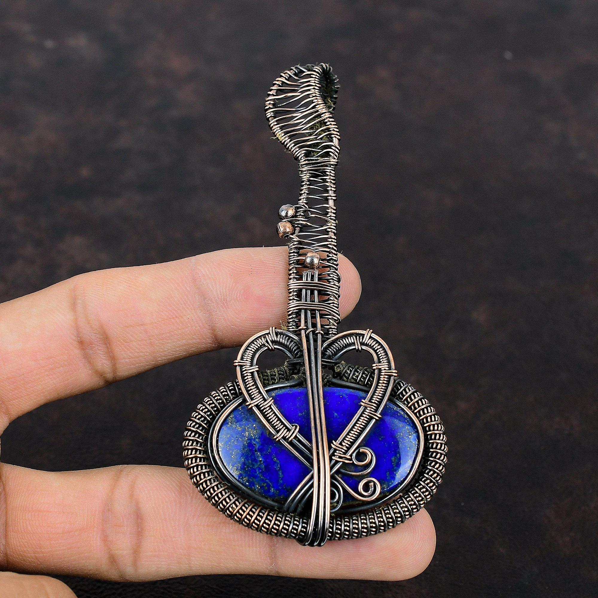 Подвеска из лазурита, подвеска из медной проволоки, подвеска ручной работы, подвеска-гитара для подарка, подвеска из натурального драгоценного камня, ювелирные изделия из медной проволоки