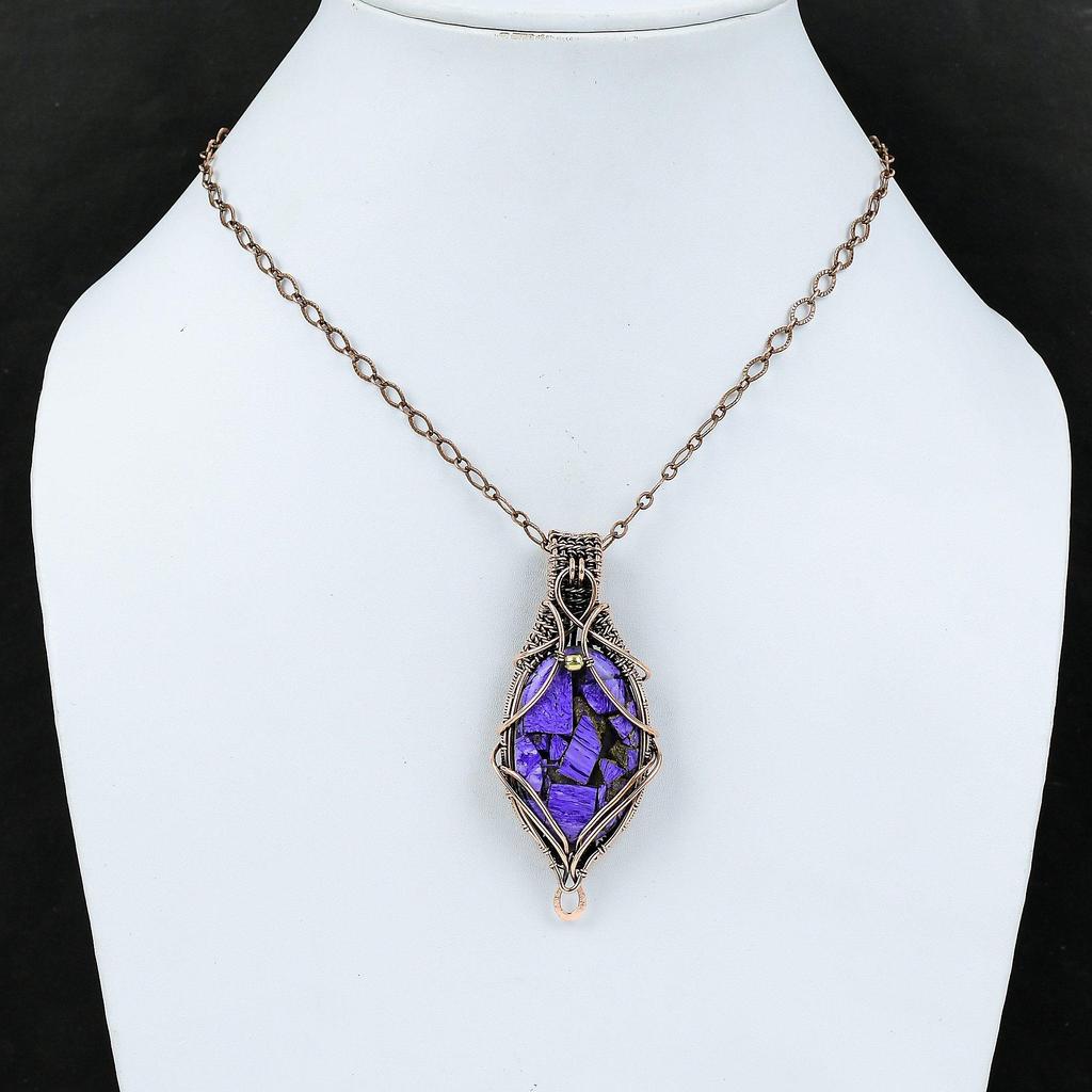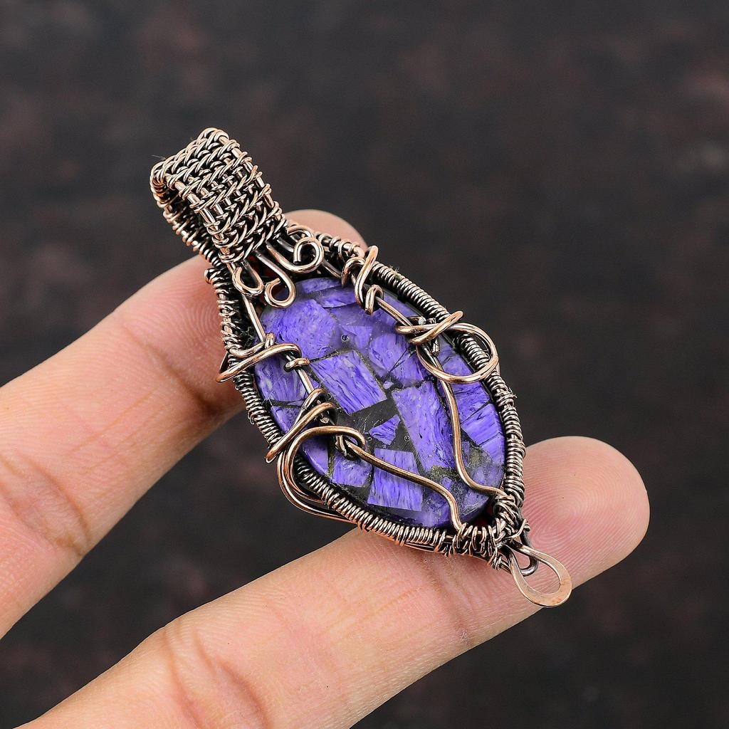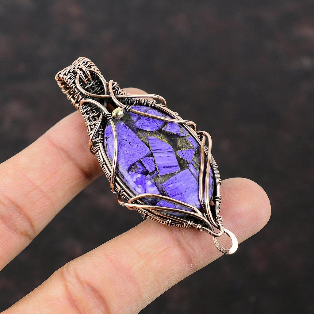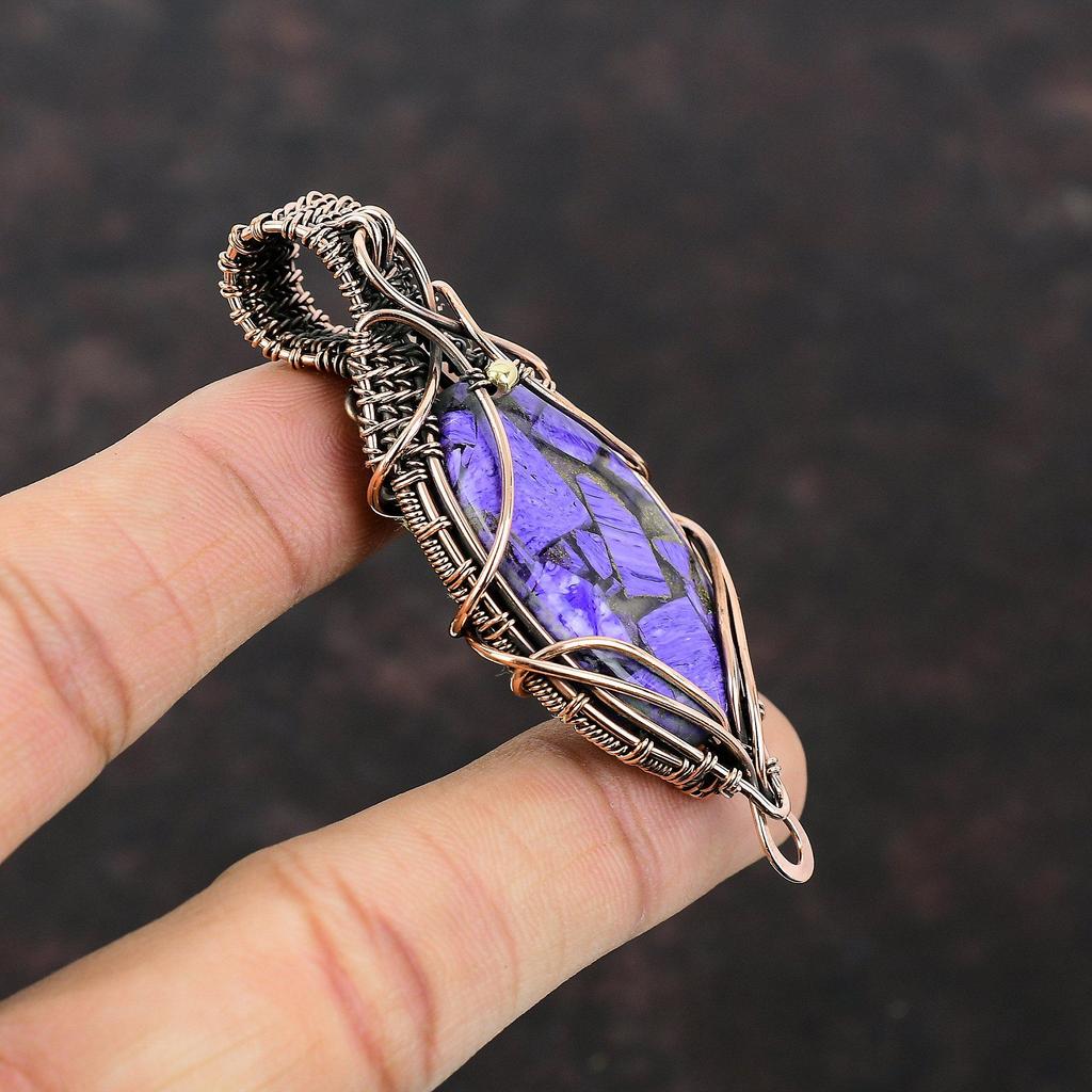 Медный кулон с чароитом, кулон, обернутый медной проволокой, украшения из натуральных драгоценных камней, кулон ручной работы, медные украшения для подарка, кулон новейшего дизайна