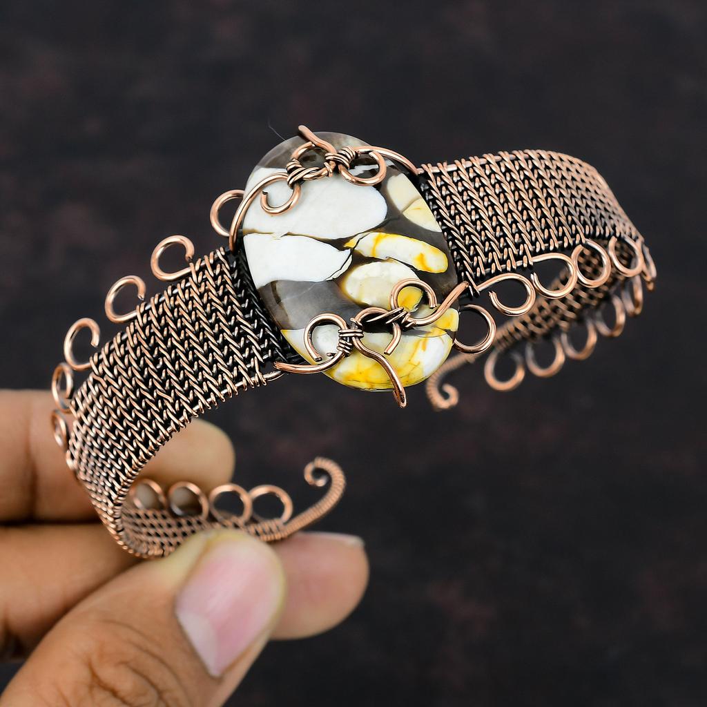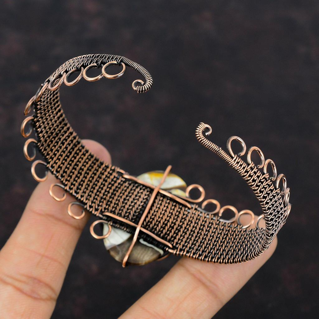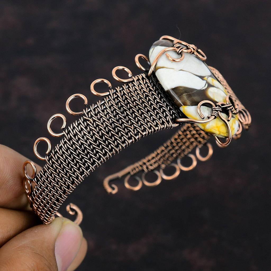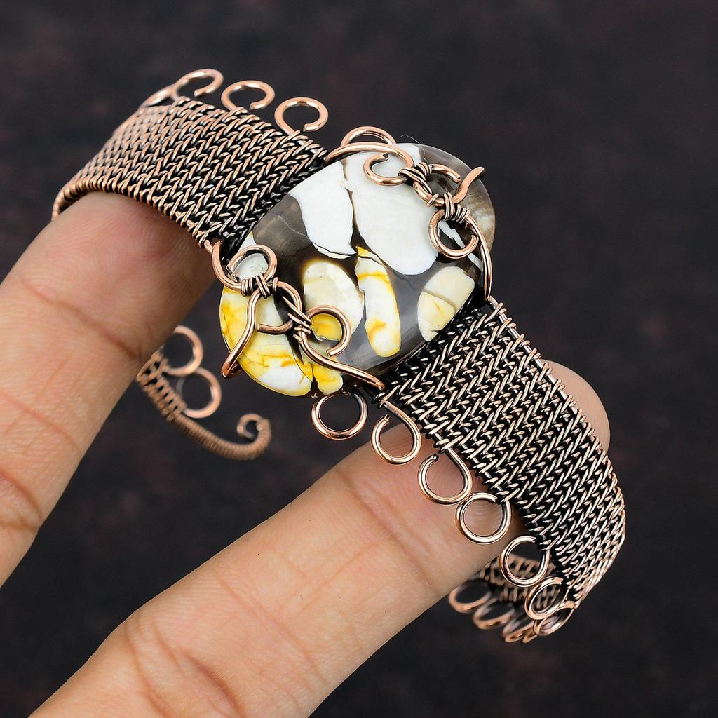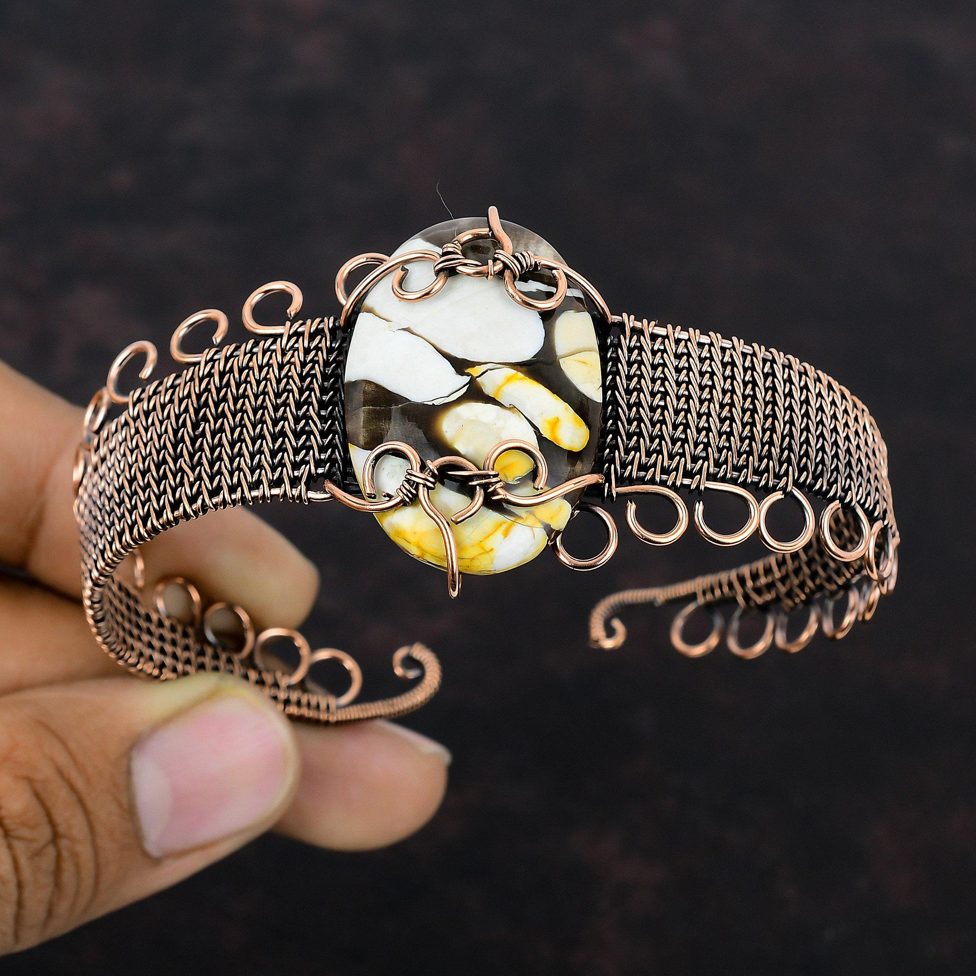 Браслет-манжета из арахисового дерева, браслет из яшмы, медная проволока, браслет-манжета, регулируемый браслет ручной работы, медные украшения для подарка, ювелирные изделия из драгоценных камней, обернутые проволокой