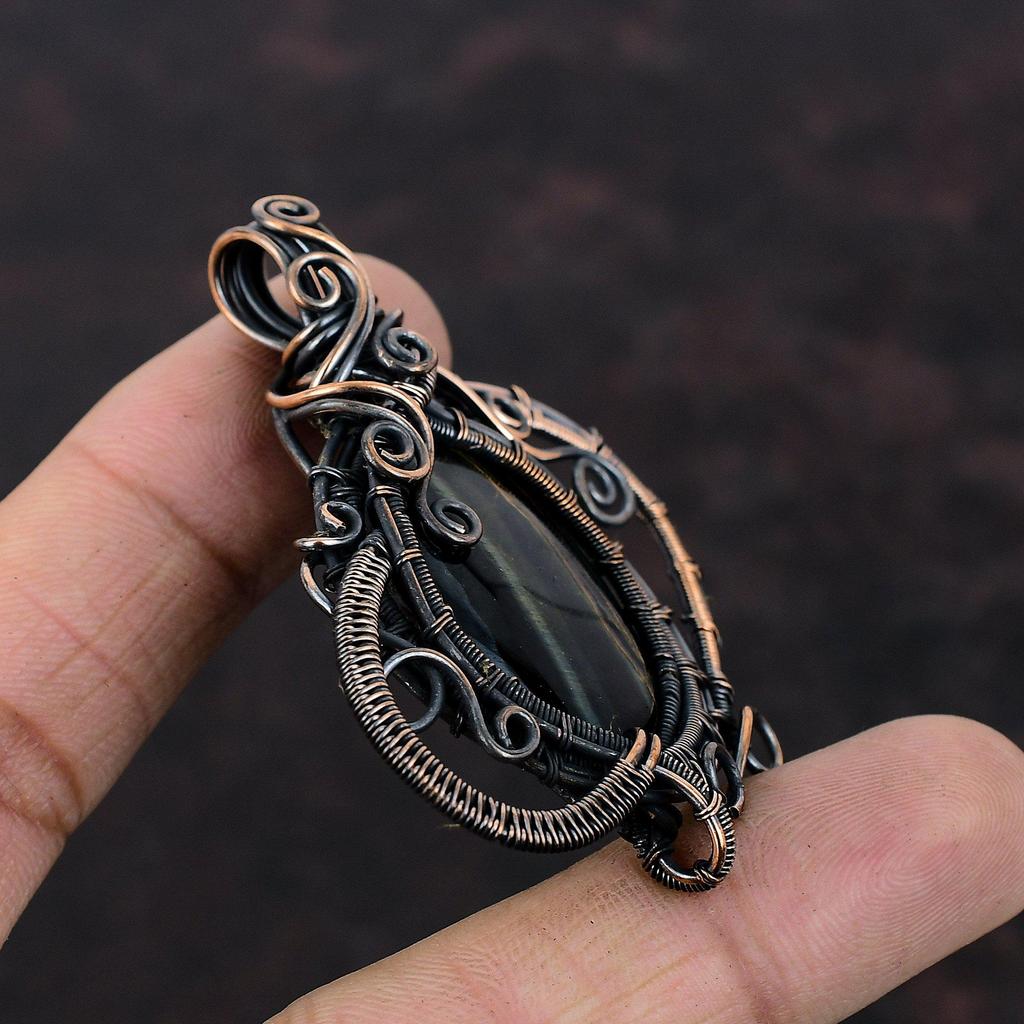Подвеска из неллита, кулон из медной проволоки, потрясающие медные украшения, кулон с драгоценным камнем, ювелирные изделия из неллита ручной работы, подарок для нее, ювелирные изделия из проволочной обмотки