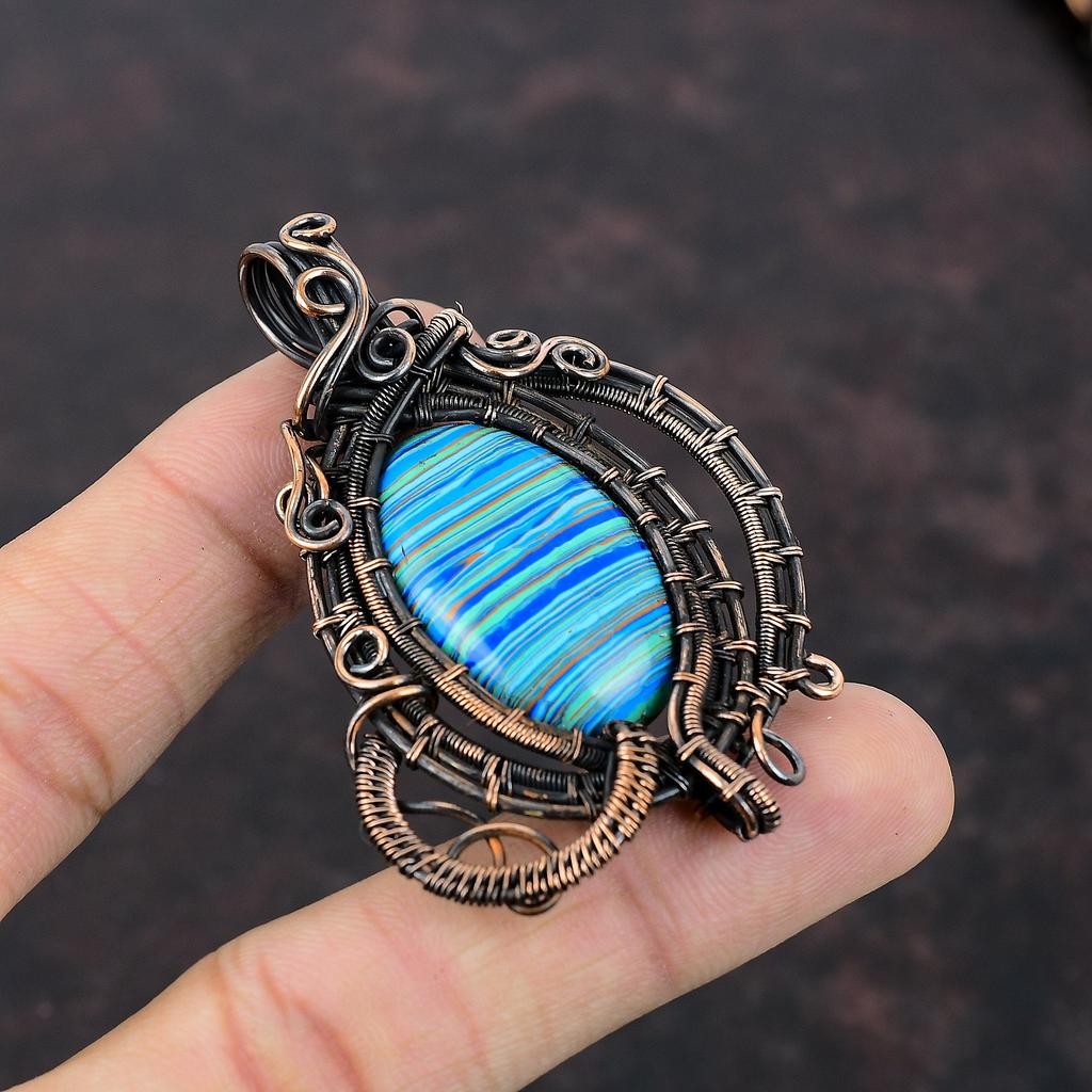 Подвеска Rainbow Calsilica, подвеска из медной проволоки, ювелирные изделия с драгоценными камнями, уникальная подвеска, ювелирные изделия из медной проволоки, подвеска ручной работы, подарок для него