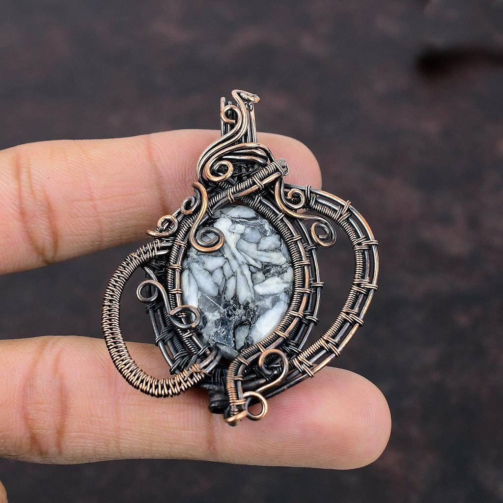 Подвеска из яшмы с медной проволокой, кулон с драгоценным камнем, подвеска из медной проволоки с яшмой из медной проволоки, подвеска ручной работы, подарок для нее, ювелирные изделия из проволочной обмотки
