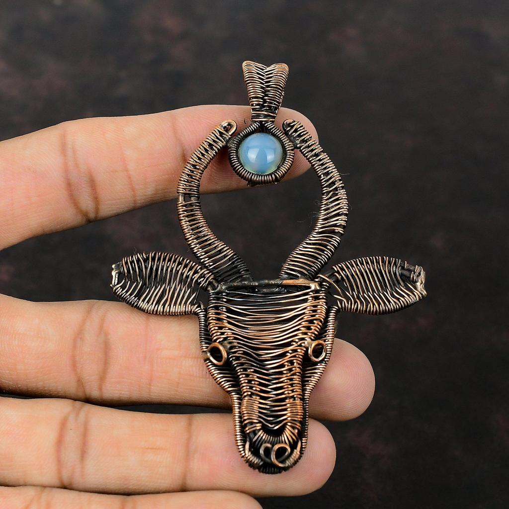 Подвеска с аквамарином, подвеска из медной проволоки, ручная работа, медные украшения, подарок для него, подвеска из натурального драгоценного камня, ювелирное украшение в виде головы быка, подвеска в стиле бохо
