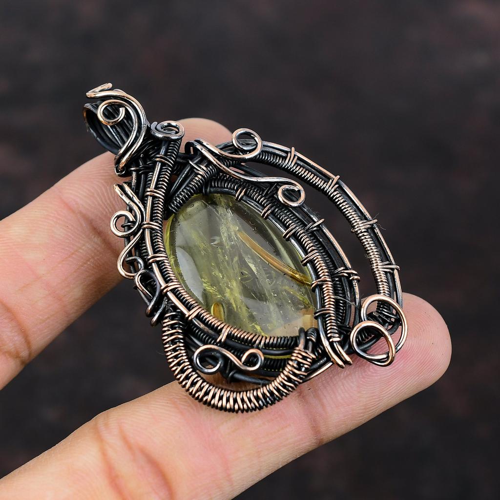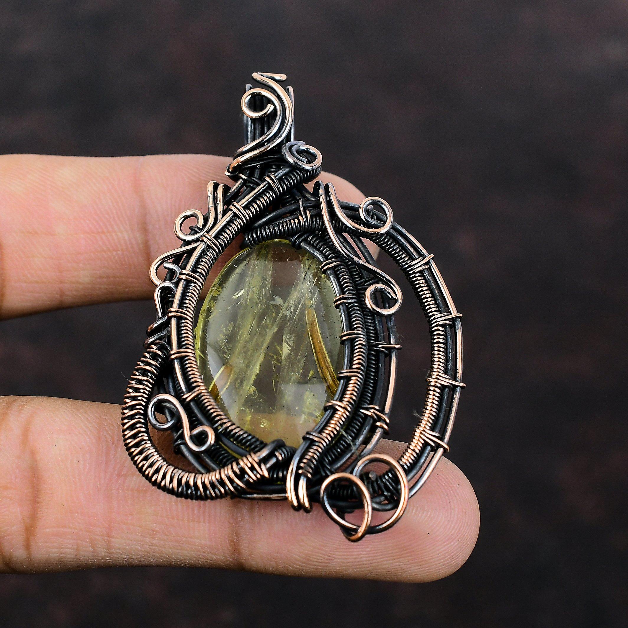 Цитриновый кулон, кулон из медной проволоки, подвеска высшего качества, кулон с драгоценным камнем, медная проволока, ювелирный подарок для мамы, кулон ручной работы в этническом стиле