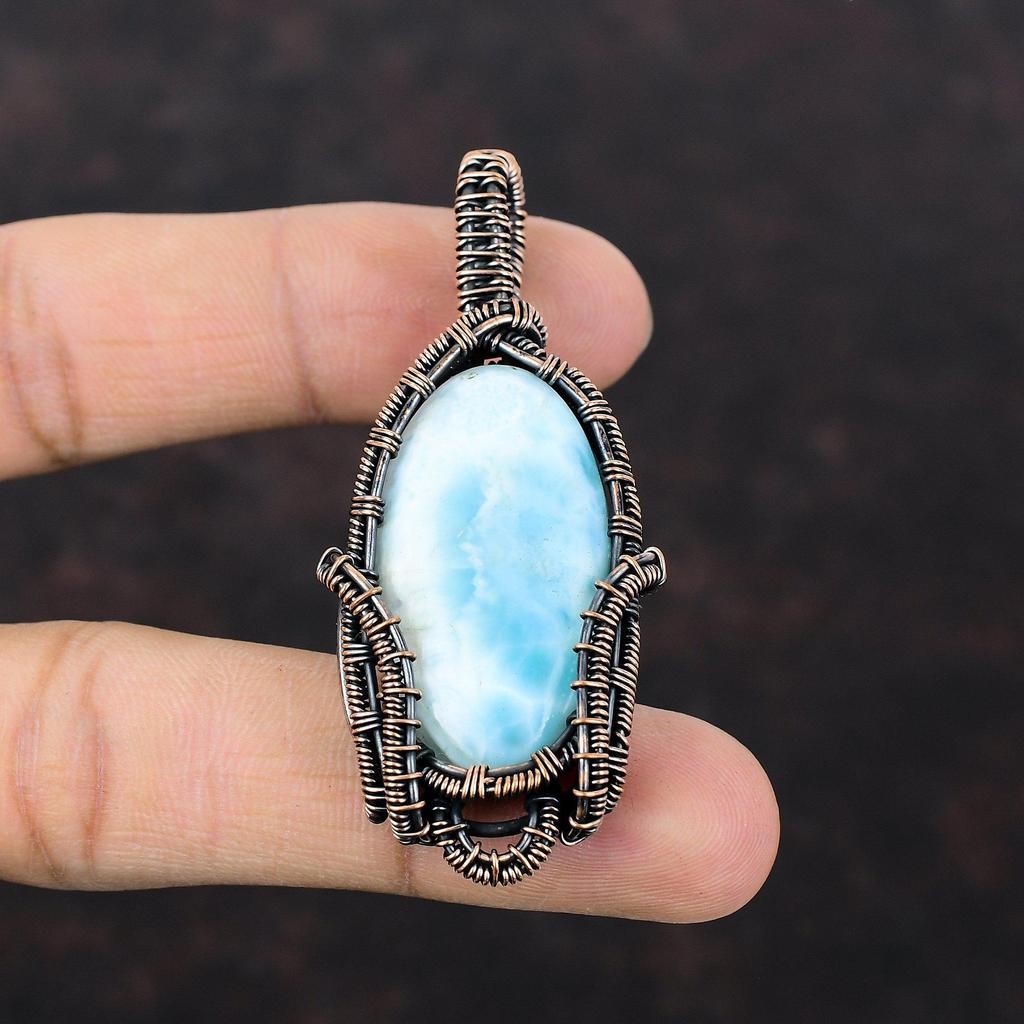 Подвеска из драгоценного камня Ларимар, обернутая медной проволокой, стильная подвеска, ручная работа, подвеска в стиле бохо, ларимар, украшения для подарка, обернутая медной проволокой