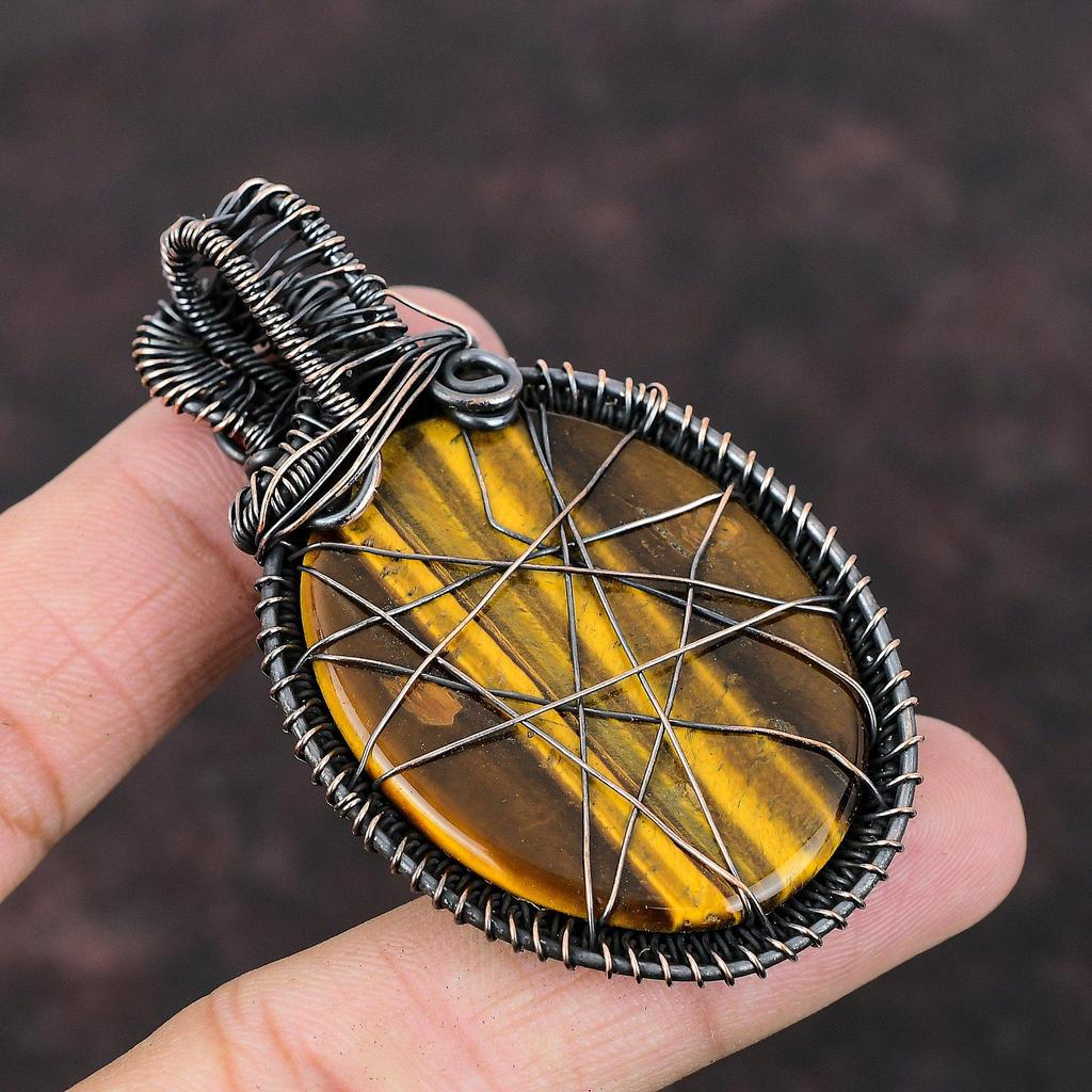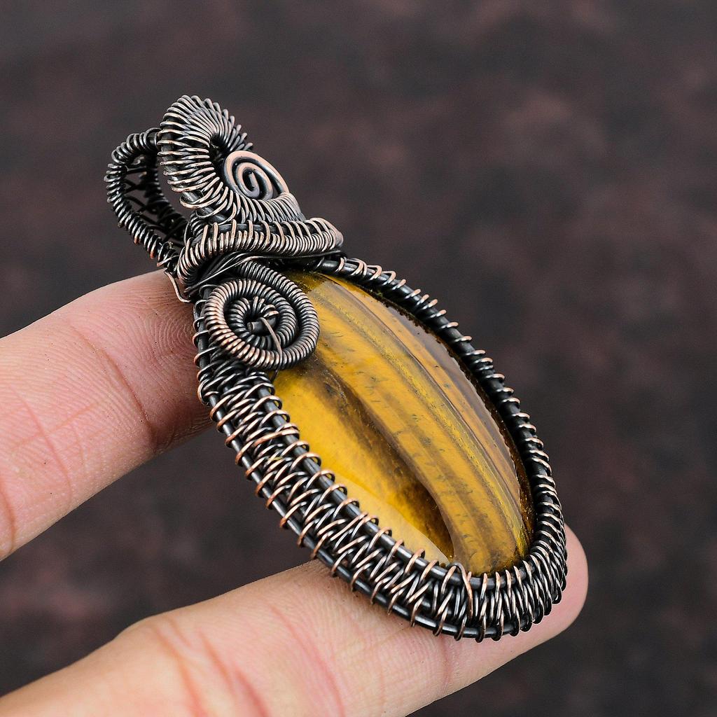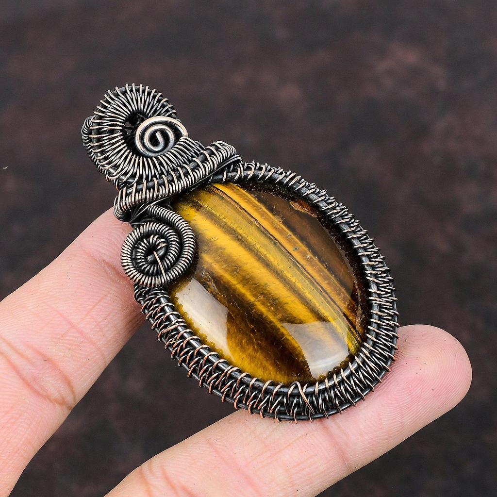 Подвеска из медной проволоки с тигровым глазом, подвеска из натурального драгоценного камня, ручная работа, медные украшения, подарок для матери, ювелирные изделия в обертке, абсолютно новый кулон