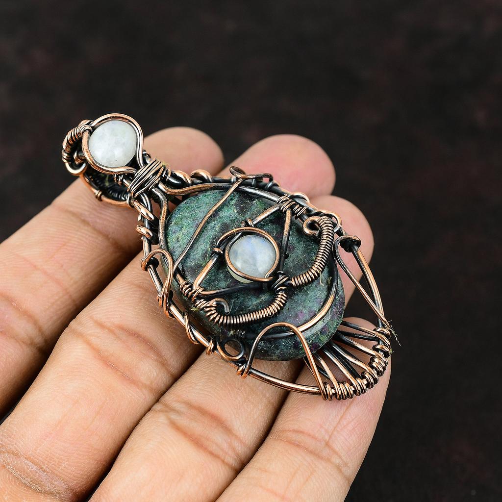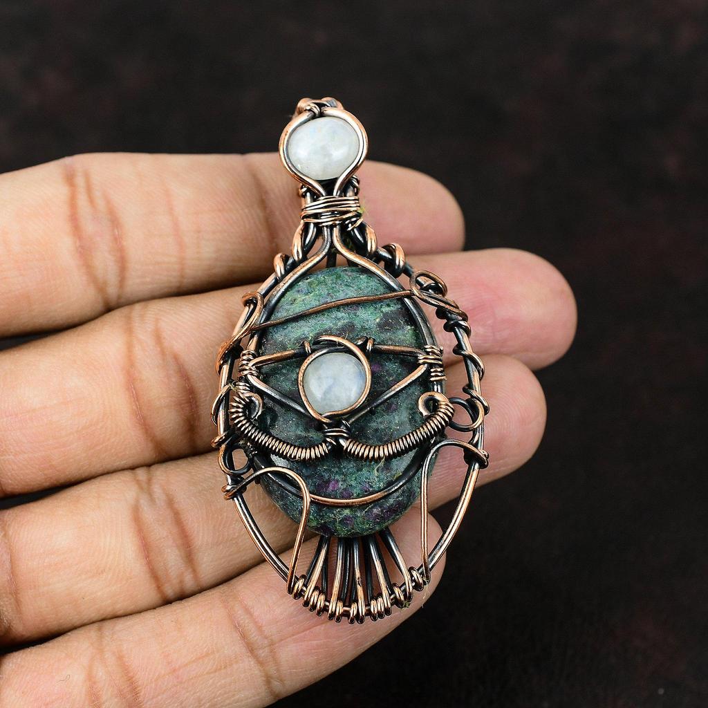 Сглаз Рубин Синий Кианит Медная Проволока Обернутый Подвеска Ювелирные Изделия Из Драгоценных Камней Лунный Камень Дизайнерские Ювелирные Изделия Ручной Работы Ювелирные Изделия Сглаза Подарок Для Него